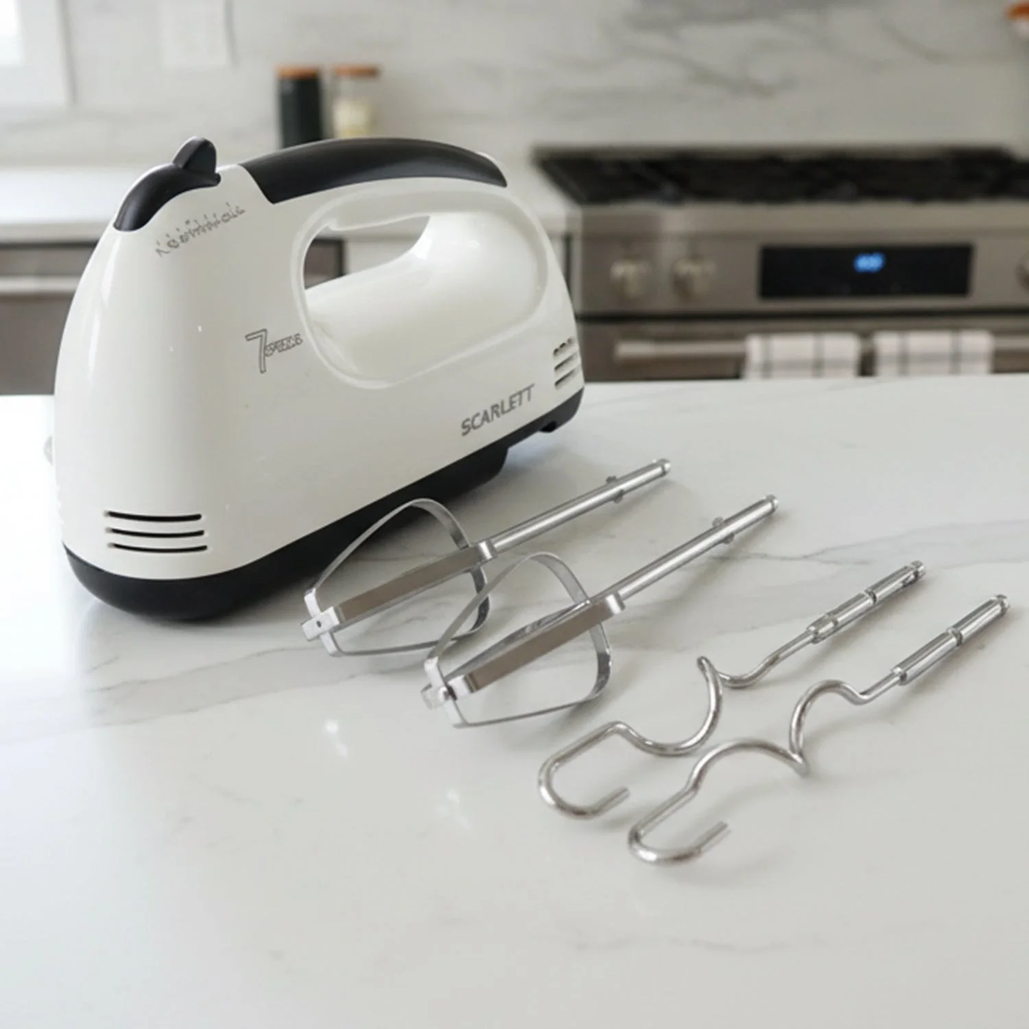 electric hand mixer, multiple speed hand mixer, stainless steel beaters, dough hooks hand mixer, kitchen baking appliance, mixing appliance set, home baking mixer, electric kitchen mixer, versatile hand mixer, cake and dough mixer, countertop hand mixer, adjustable speed electric mixer, baking and mixing tool, lightweight hand mixer