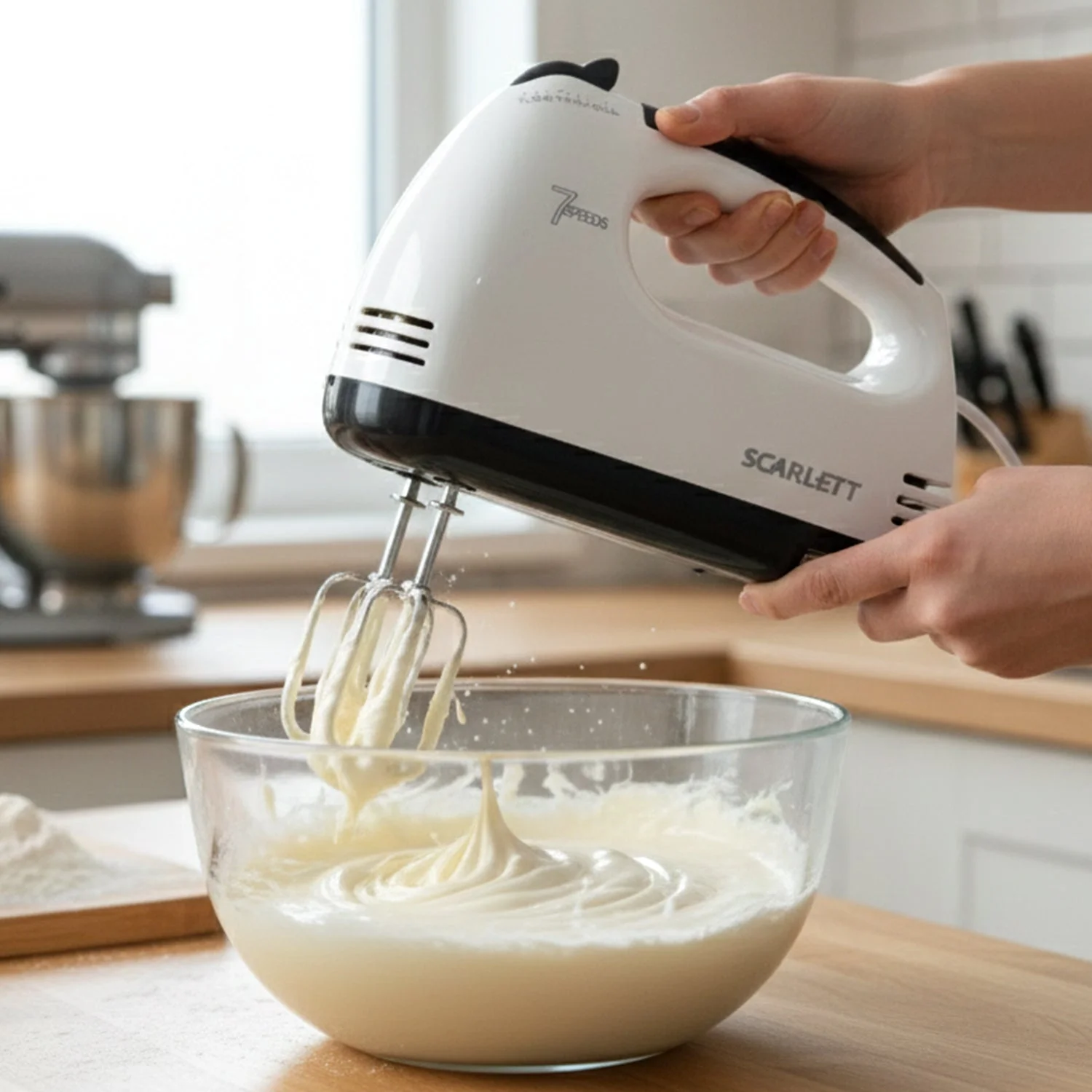 Electric Hand Mixer with Multiple Speed Control and Stainless Steel Beaters & Dough Hooks – Kitchen Baking and Mixing Appliance Set