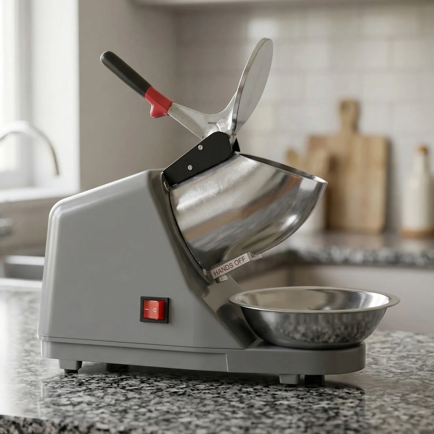 Equipped with a sturdy stainless steel ice crusher bowl, it ensures durability and easy cleaning after use. The ice crusher for home is perfect for parties, cafes, and daily drink preparation. Whether making cocktails, mocktails, or chilled juices, this electric ice shaver machine delivers perfectly crushed ice every time.