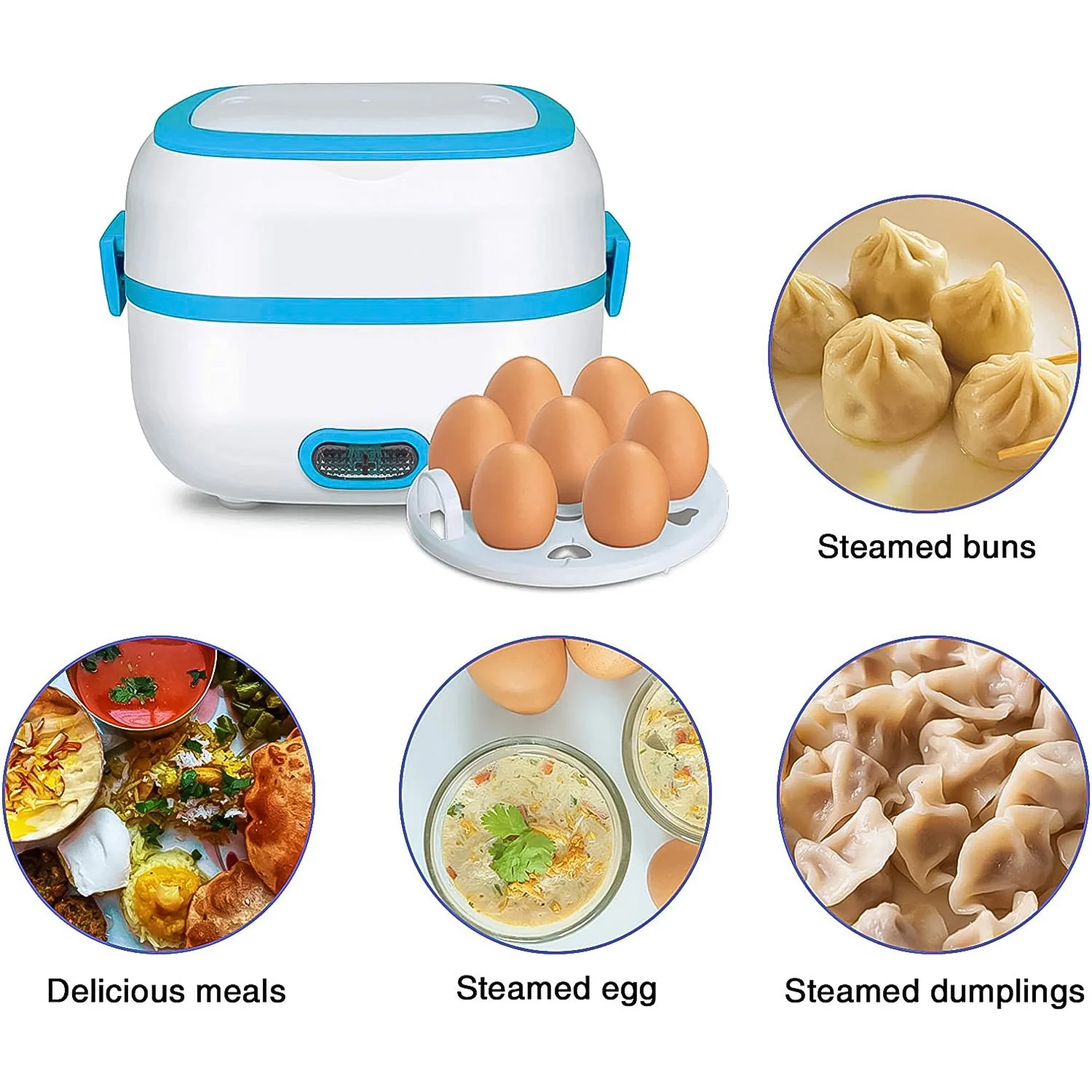 Electric Lunch Box, 3 In 1 Food Heater / Cooker / Steamer with Stainless Steel Bowls, Egg Steaming Tray, Spoon, Measuring Cup for Office, School, Travel (1 Set)