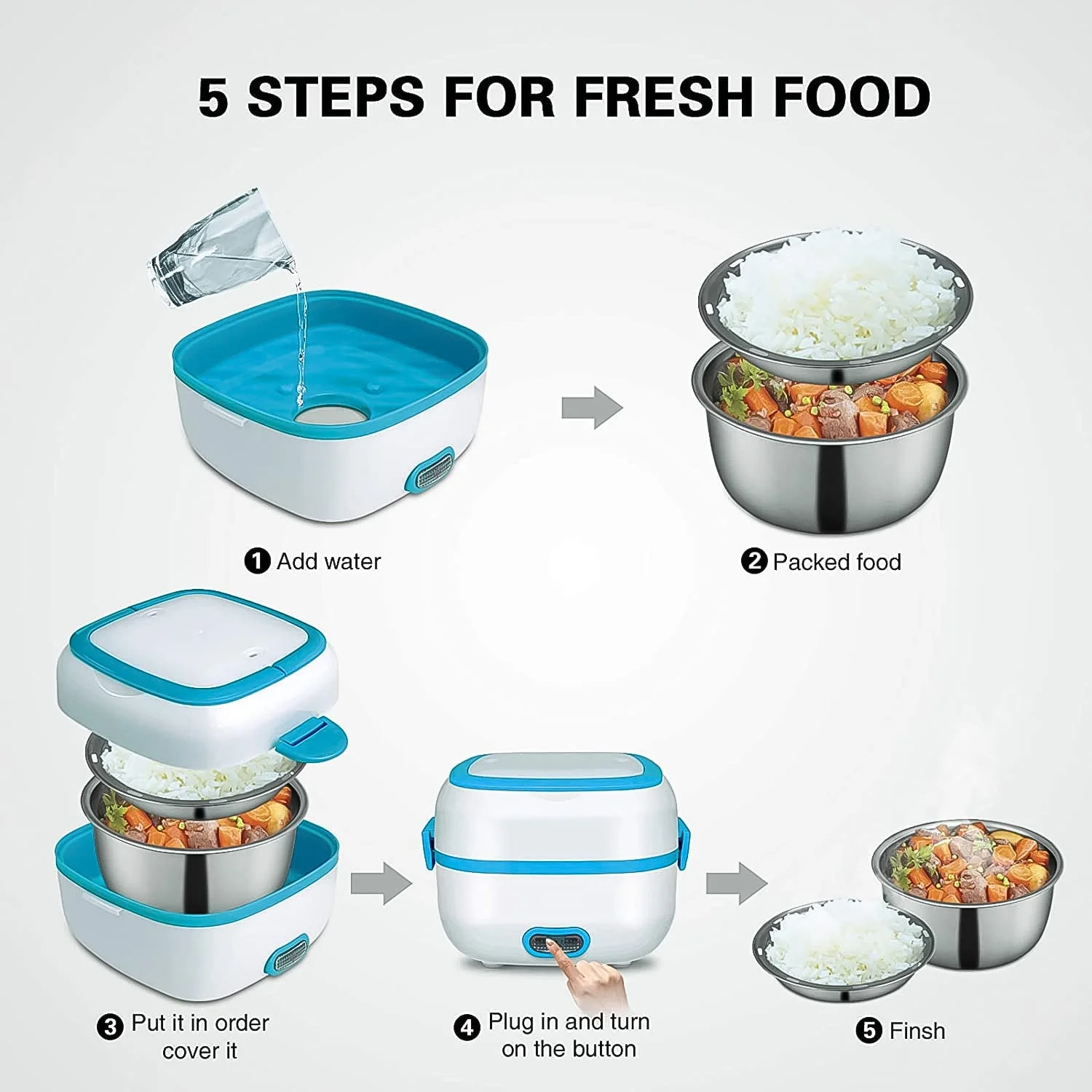 The compact, portable design makes it easy to carry and store, while the durable, leak-proof construction ensures your food stays secure. Whether you're heating up leftovers, warming soup, or keeping your lunch at the perfect temperature, this electric lunch box offers an easy and efficient way to enjoy your meals on the go.