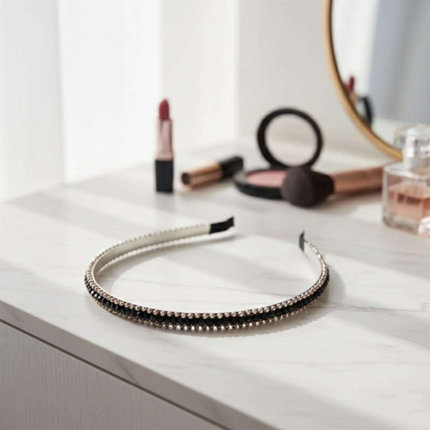 elegant black crystal hair band, crystal studded hair band, black metal hair band for women, decorative crystal headband, party wear hair band for women, wedding hair band for girls, premium crystal headband, black rhinestone hair band, stylish metal hair band for women, festive hair band for women, bridal hair band black, casual hair styling headband, daily wear hair band for girls, women fashion headband black, crystal embellished hair band