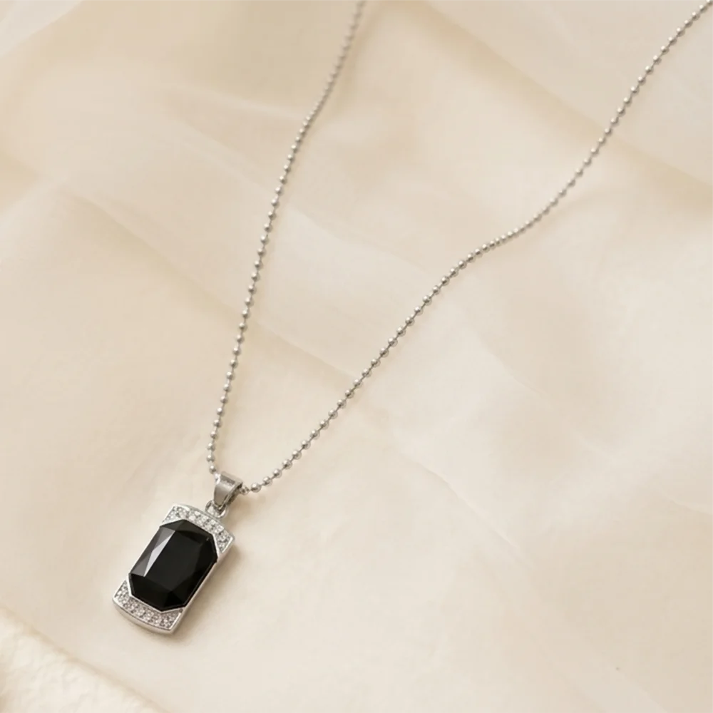 Be the first to review Elegant Black Onyx Pendant Necklace with Crystal Frame Stylish Chain Jewelry!