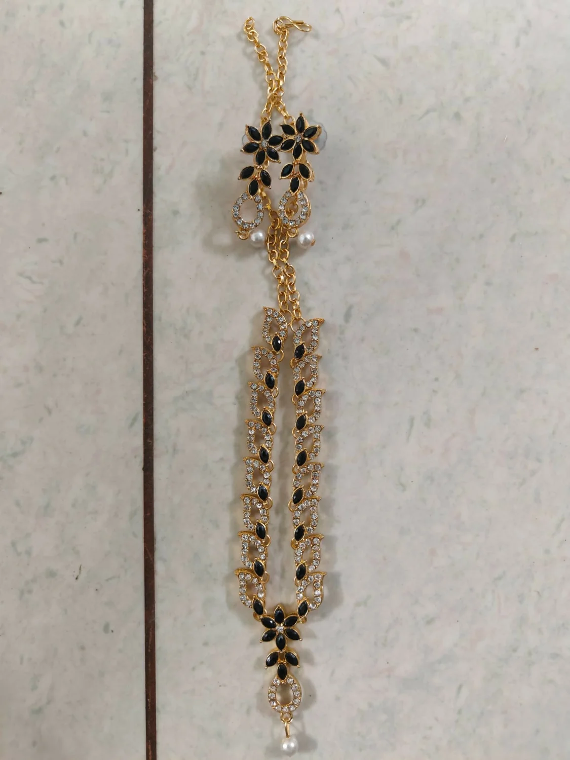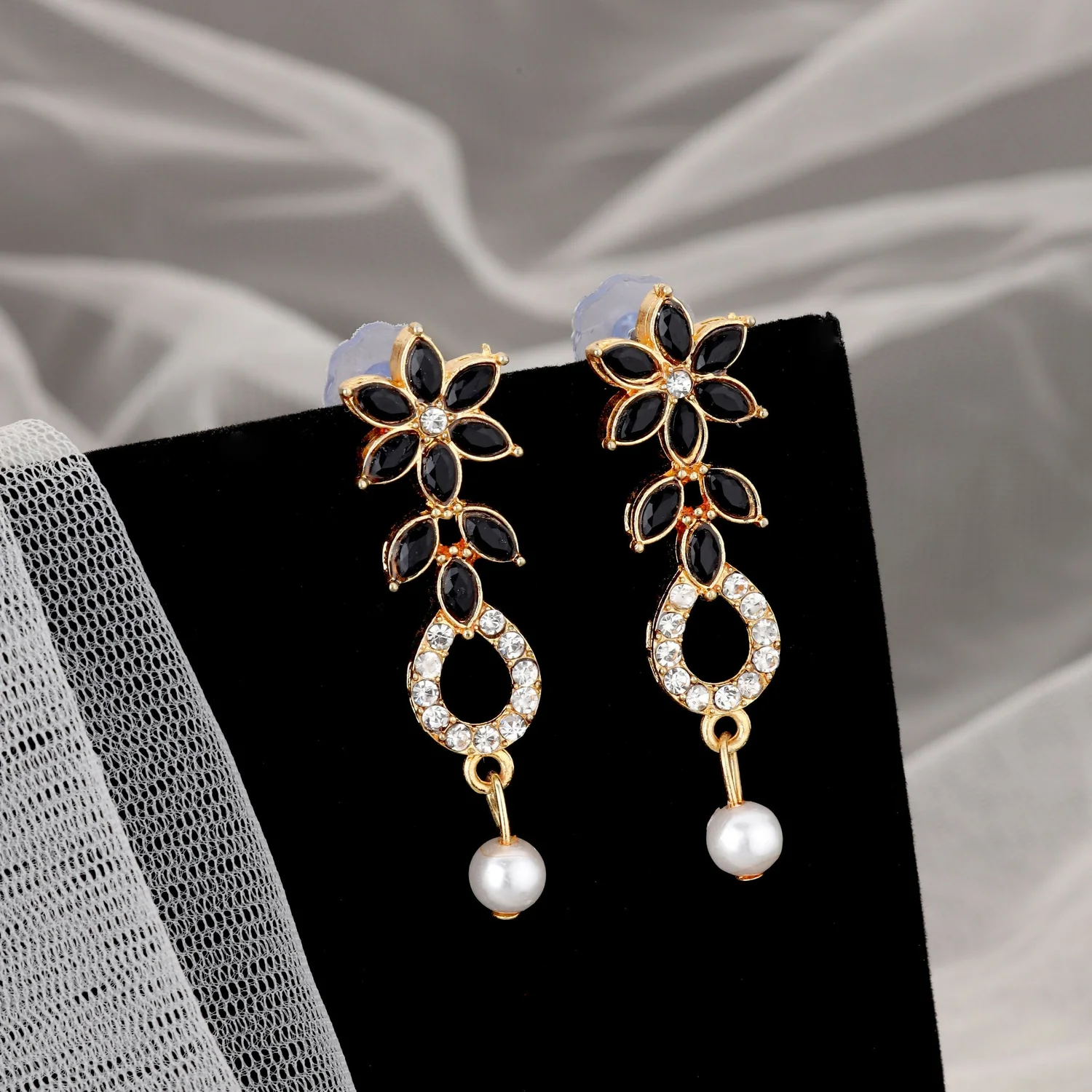 Be the first to review Elegant Black & White Crystal Flower Necklace Set with Pearl Drop!