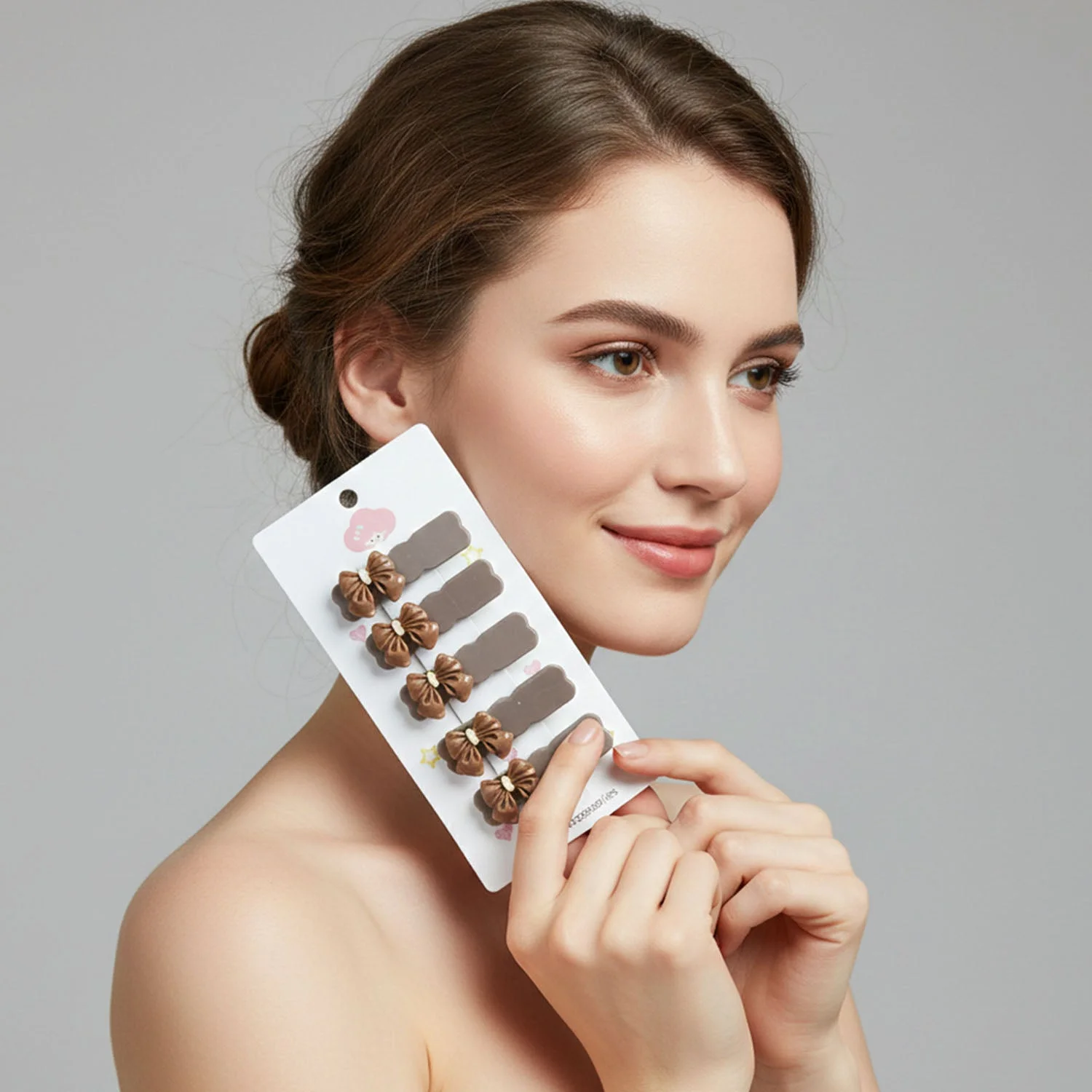 This elegant hair clip set features a classic bow design that adds a soft and stylish touch to everyday hairstyles. Each clip is crafted to provide a secure hold while maintaining a lightweight and comfortable feel throughout the day. The smooth clip mechanism helps keep hair neatly in place without causing discomfort or pulling. Designed for daily styling, these decorative clips complement casual outfits as well as slightly dressed-up looks. A practical and fashionable addition to any hair accessory collection.