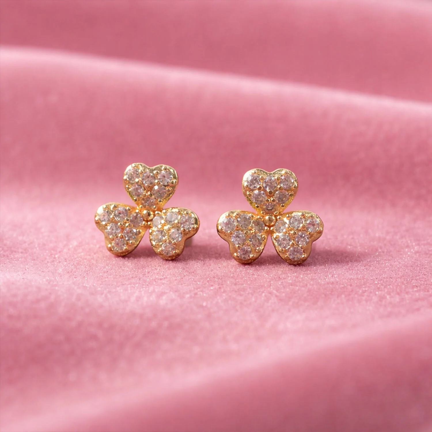 Be the first to review Elegant Clover Flower Design Stud Earrings for Women – Gold Tone Sparkling Floral Earrings!
