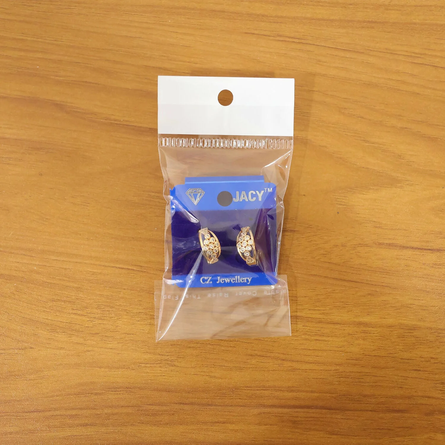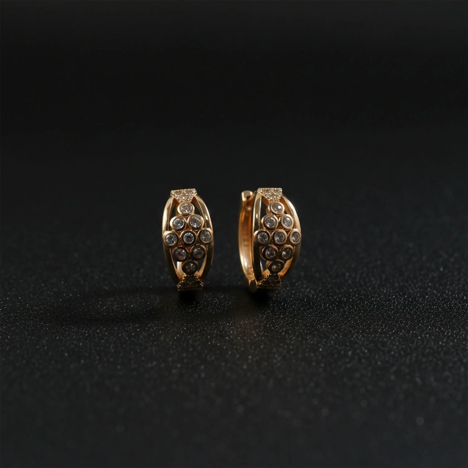 These elegant hoop earrings feature a refined openwork design highlighted by a neatly arranged cluster of clear crystal stones at the center. The structured hoop silhouette is enhanced with delicate detailing, creating a perfect balance between modern style and classic appeal. Designed to sit comfortably on the ear, they offer a subtle sparkle that complements both everyday outfits and special occasions. The secure clasp provides a reliable fit for confident wear throughout the day. Ideal for festive looks, evening wear, or graceful daily styling, these earrings add a touch of understated elegance to any ensemble.