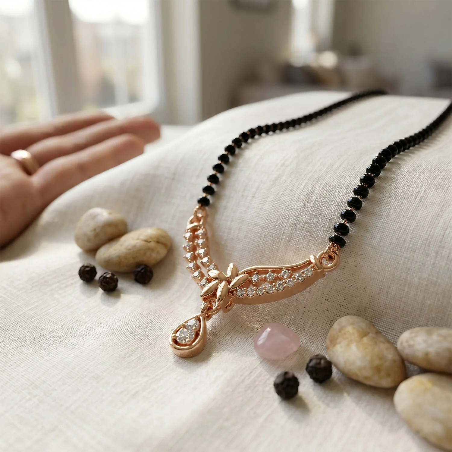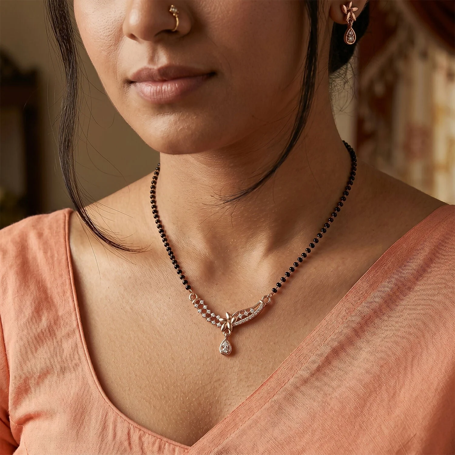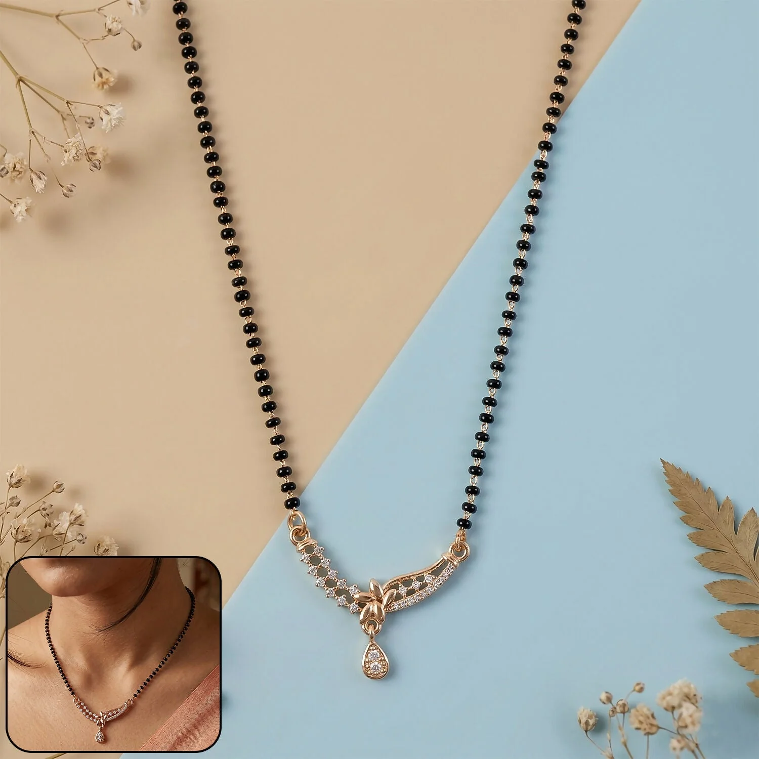 Be the first to review Elegant Designer Mangalsutra Necklace with Crystal Link and Drop Pendant 1 Pc!