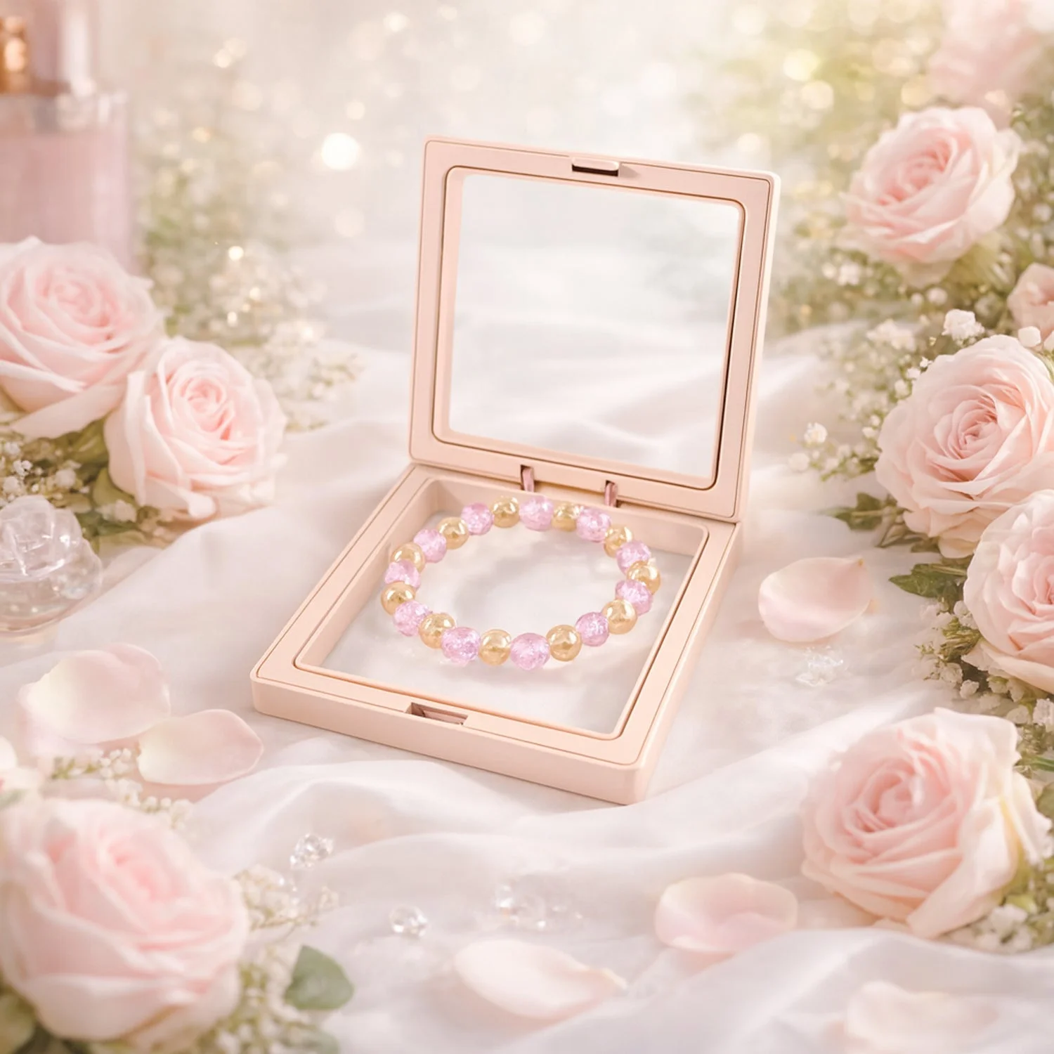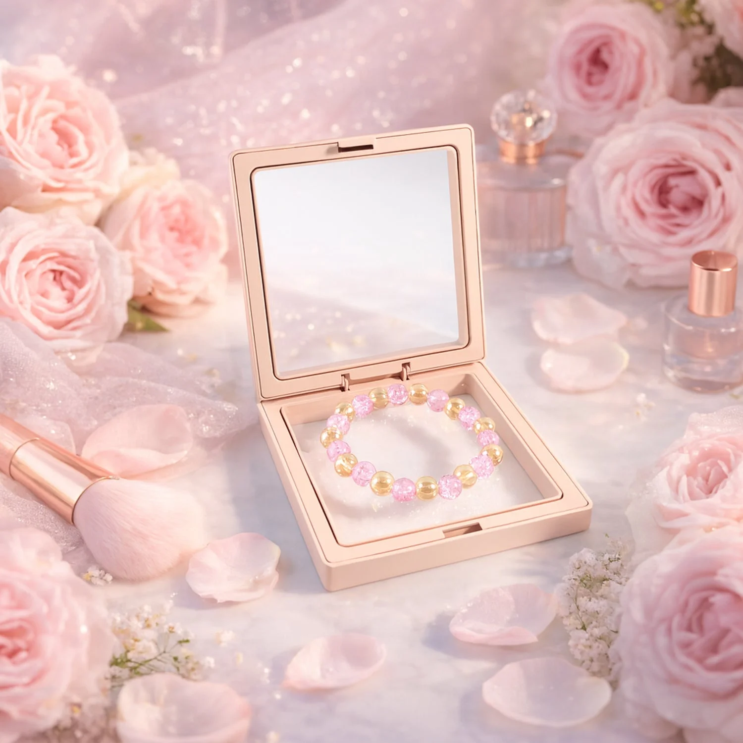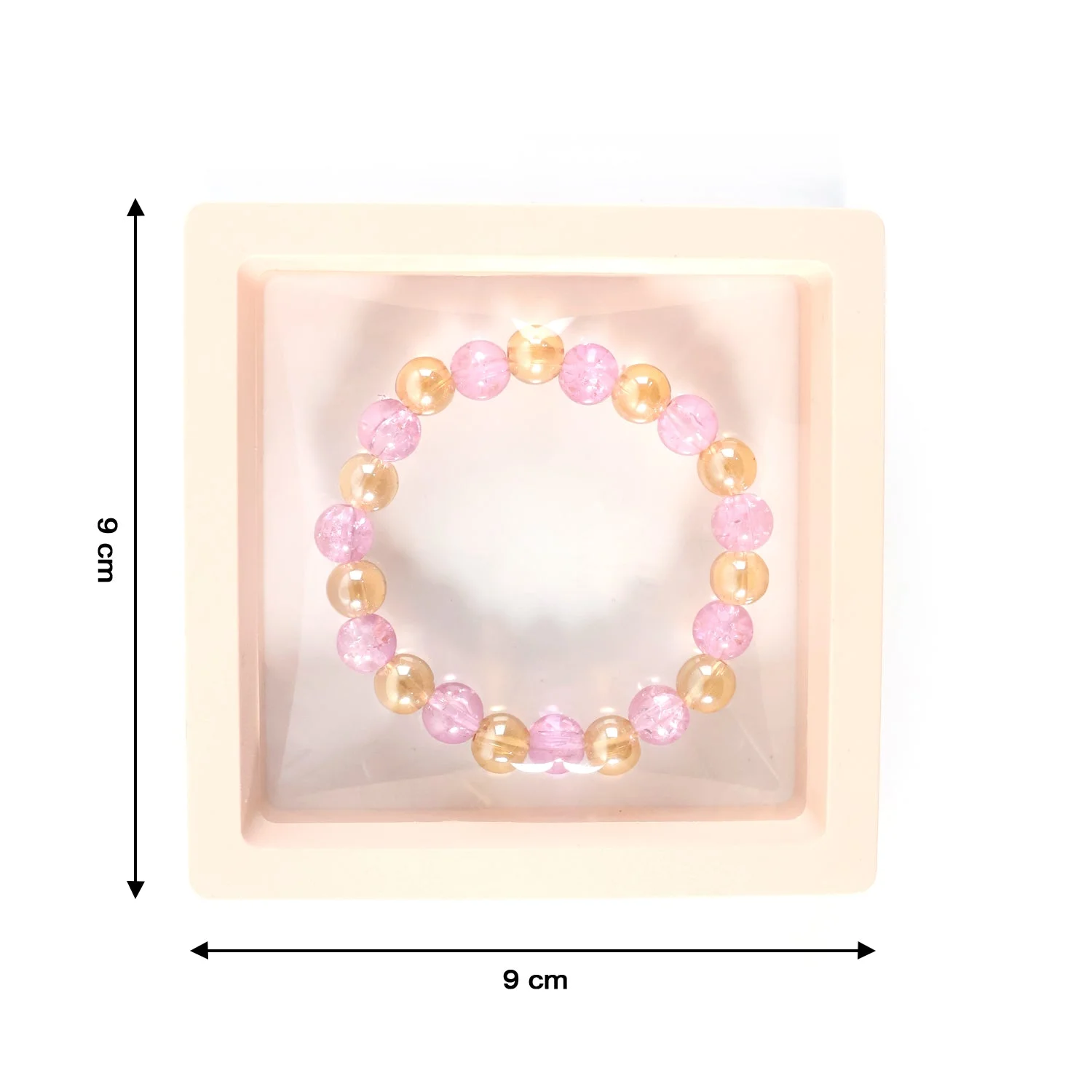 This elegant dual-tone crystal beaded stretch bracelet is designed to add a refined sparkle to everyday and occasion wear. Featuring a harmonious mix of glossy transparent beads in soft pink and warm golden tones, the bracelet offers a balanced look that is subtle yet eye-catching. The smooth round beads are strung on a flexible elastic cord, ensuring a comfortable slip-on fit suitable for most wrist sizes. Lightweight and easy to pair with both ethnic and western outfits, this bracelet works beautifully as a standalone accessory or layered with other bangles and bracelets. Ideal for daily use, festive occasions, or thoughtful gifting, it brings a graceful touch to any jewelry collection.