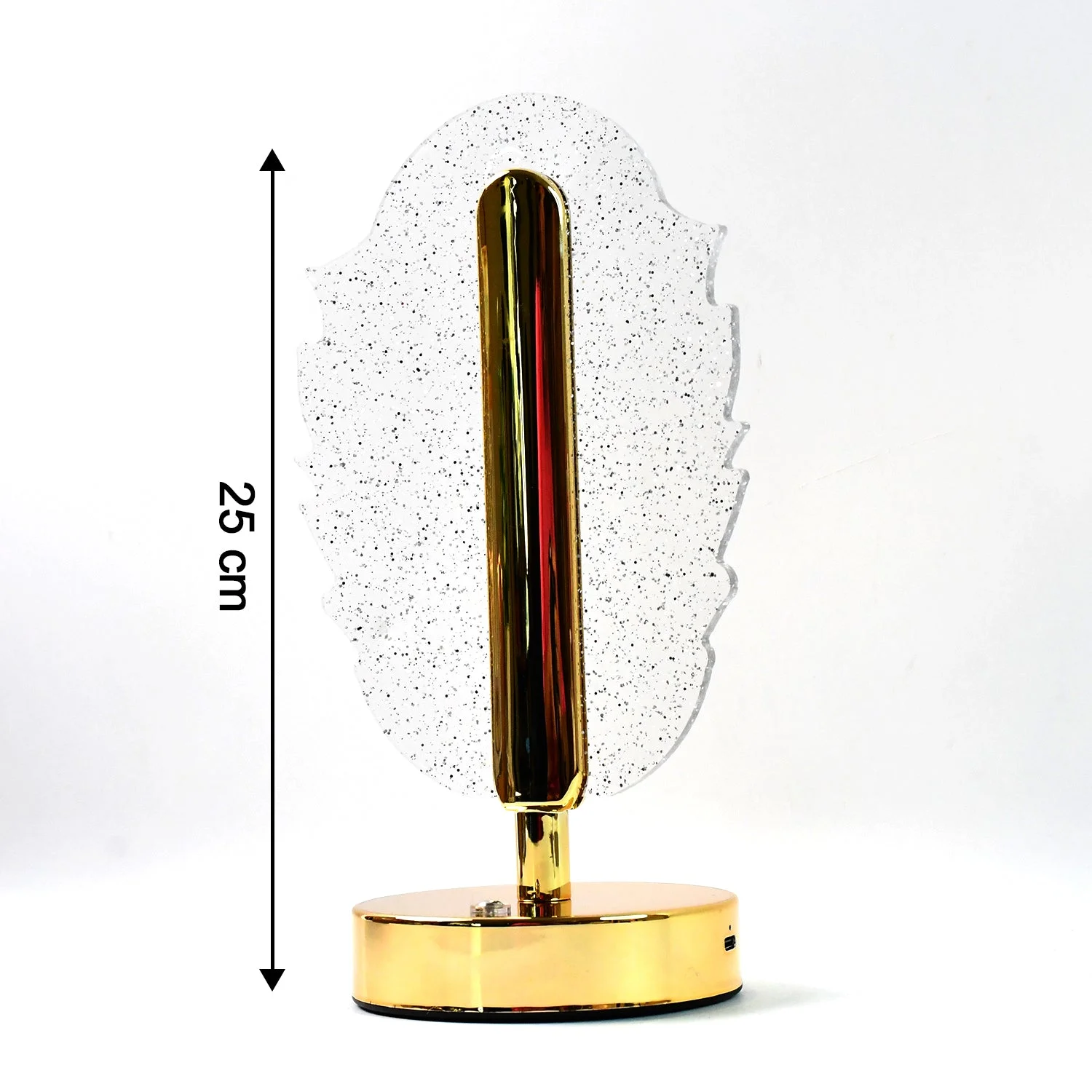 Bring home the charm of modern luxury with this Feather Shape Crystal Table Lamp. Crafted with a crystal-cut acrylic shade in a stunning feather-inspired design and mounted on a sturdy metallic base, this lamp combines elegance with practicality. The LED light produces a soothing warm glow that instantly enhances the atmosphere of any space. Featuring USB charging support, it is convenient for everyday use while adding a sophisticated touch to your interiors. Ideal for bedrooms, offices, cafes, hotels, and gifting.