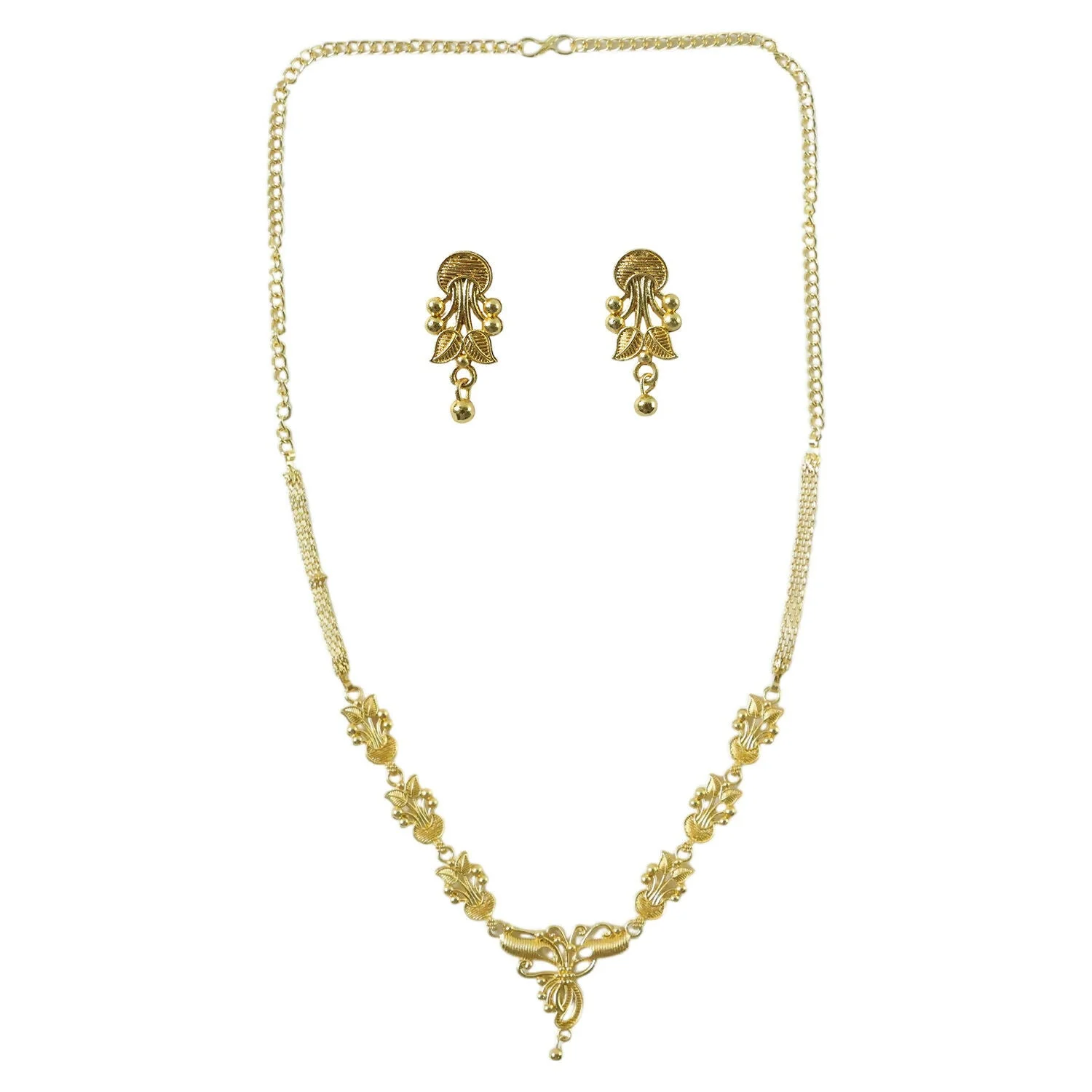 Be the first to review Elegant Gold Floral Necklace Set with Designer Pendant!