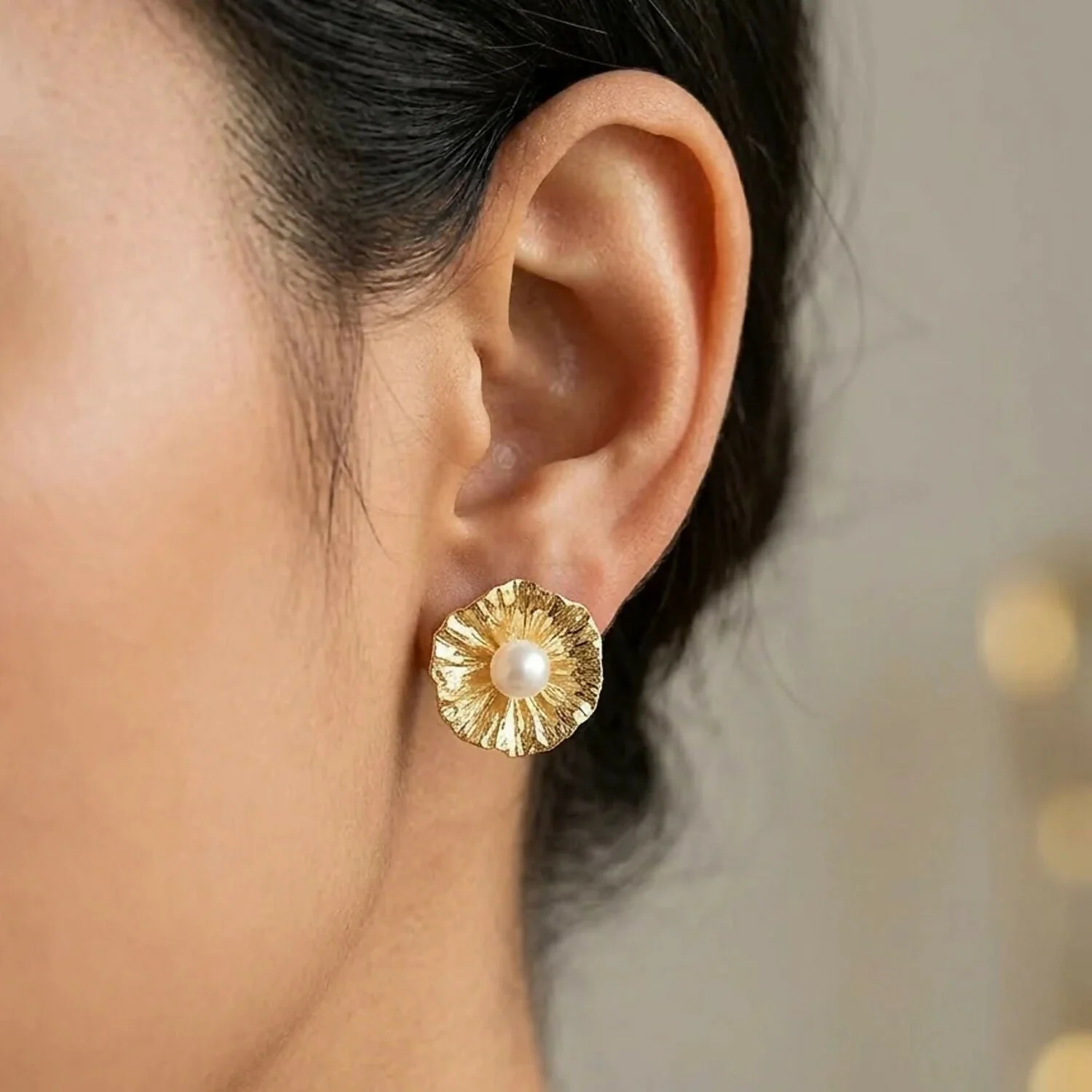 Be the first to review Elegant Gold Flower Pearl Stud Earrings for Women Minimal Designer Jewelry!