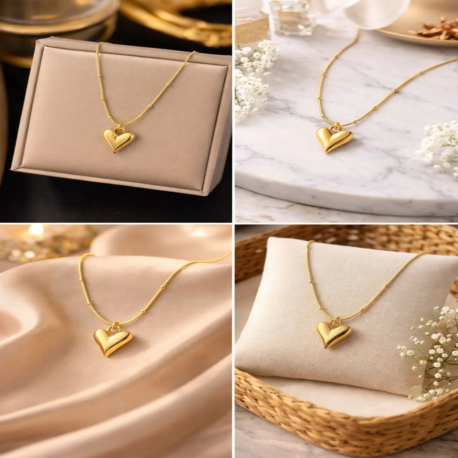 Add a touch of timeless elegance to your look with this beautiful gold heart pendant necklace. Designed with a smooth, polished heart charm and a delicate chain, this necklace symbolizes love, warmth, and simplicity. Its minimalist design makes it perfect for daily wear as well as special occasions.