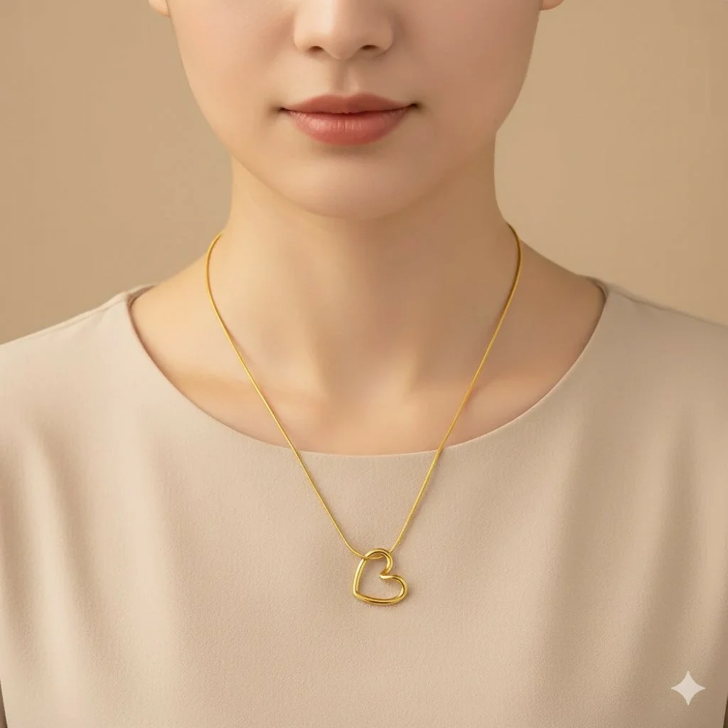 Express timeless elegance with this beautiful gold heart pendant necklace. Crafted with a sleek open-heart design and paired with a fine, lightweight chain, this necklace symbolizes love, grace, and simplicity. The smooth gold finish adds a luxurious touch, making it suitable for both everyday wear and special occasions.