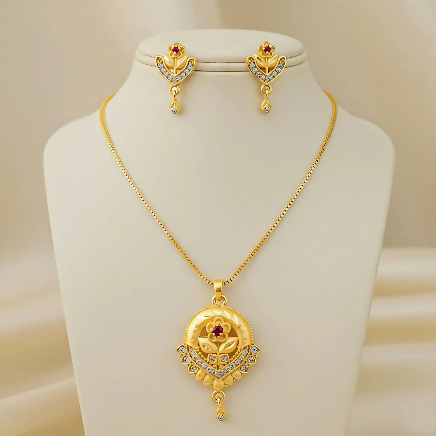 Be the first to review Elegant Gold-Plated Floral Bloom Jewelry Set: Pendant, Chain, and Earrings, popular pendant set!