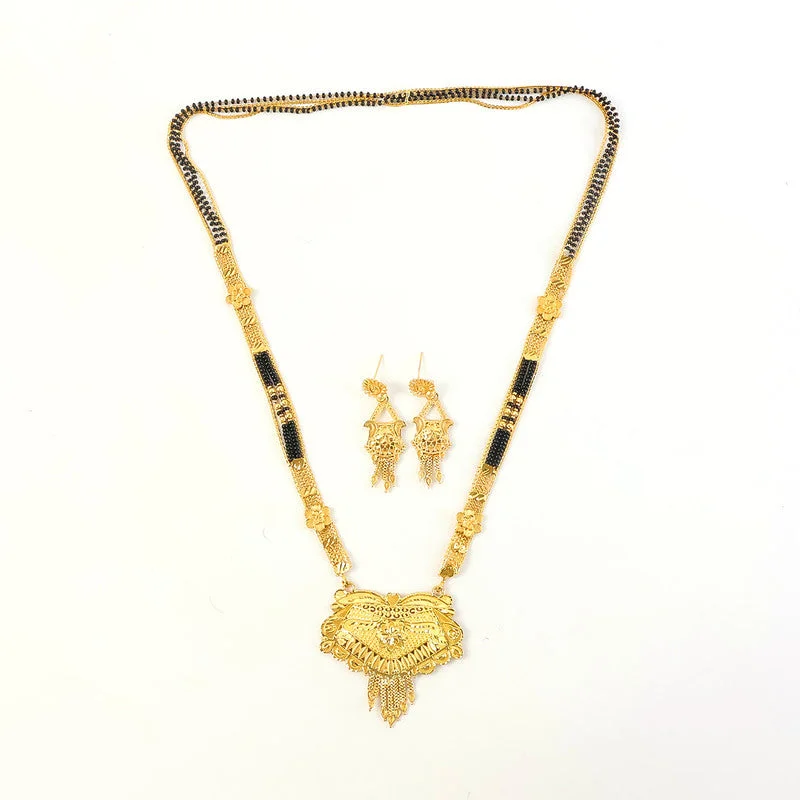 elegant gold-plated mangalsutra, gold-plated mangalsutra set, traditional mangalsutra necklace, intricate detailing mangalsutra, bridal mangalsutra set, festive mangalsutra, ethnic mangalsutra jewellery, wedding mangalsutra necklace, designer mangalsutra set, women’s traditional jewellery