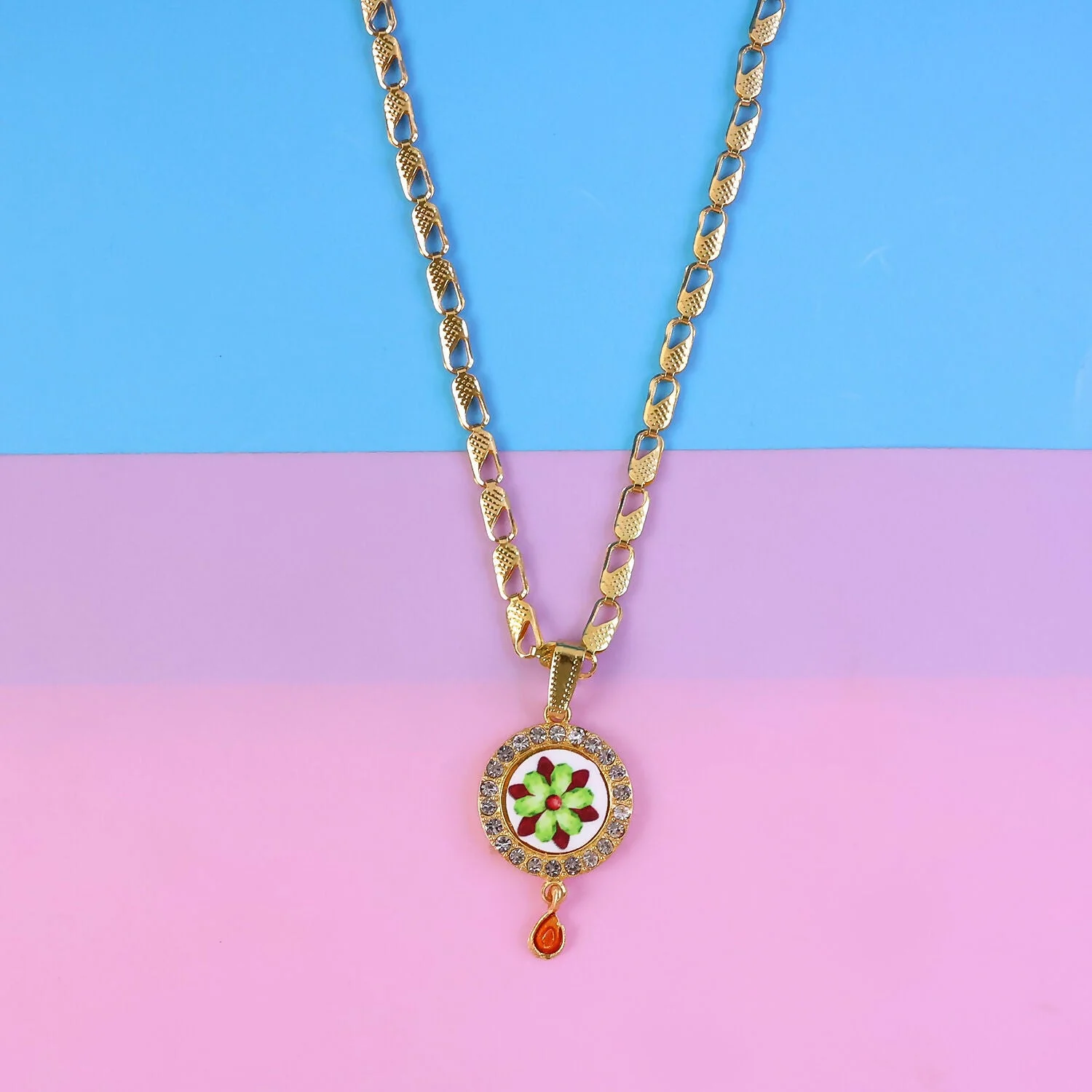 Be the first to review Elegant Gold Plated Pendant Necklace with Floral Design!