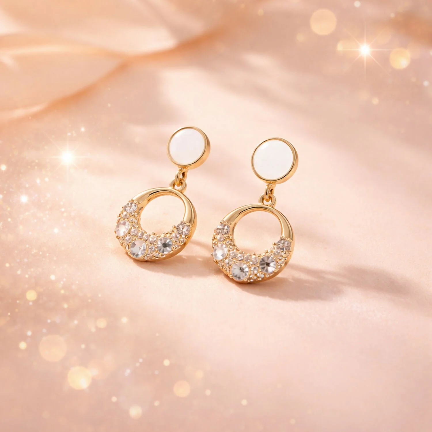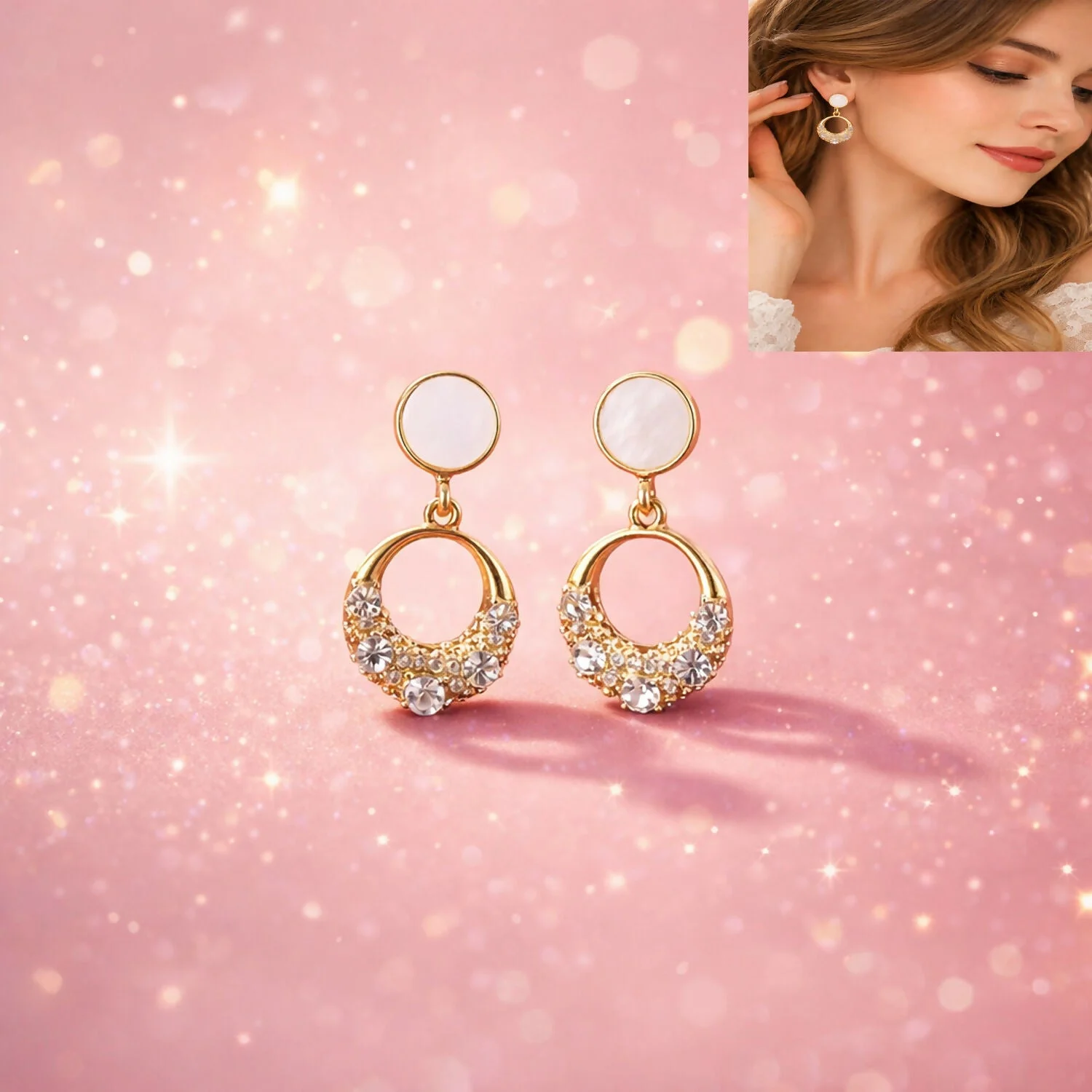 Be the first to review Elegant Gold Round Crystal Drop Earrings with Pearl Top Design for Women!