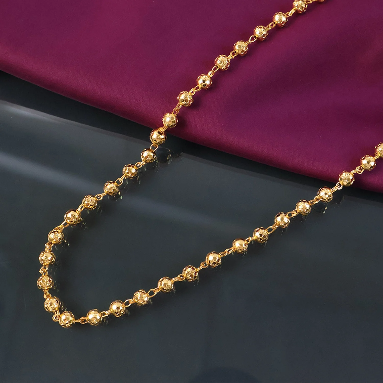 Elegant Gold-Tone Beaded Necklace Chain for Women – Classic Long Round Bead Design Necklace for Daily Wear, Office Styling, Festive Occasions & Minimal Ethnic Fashion (Single Piece)