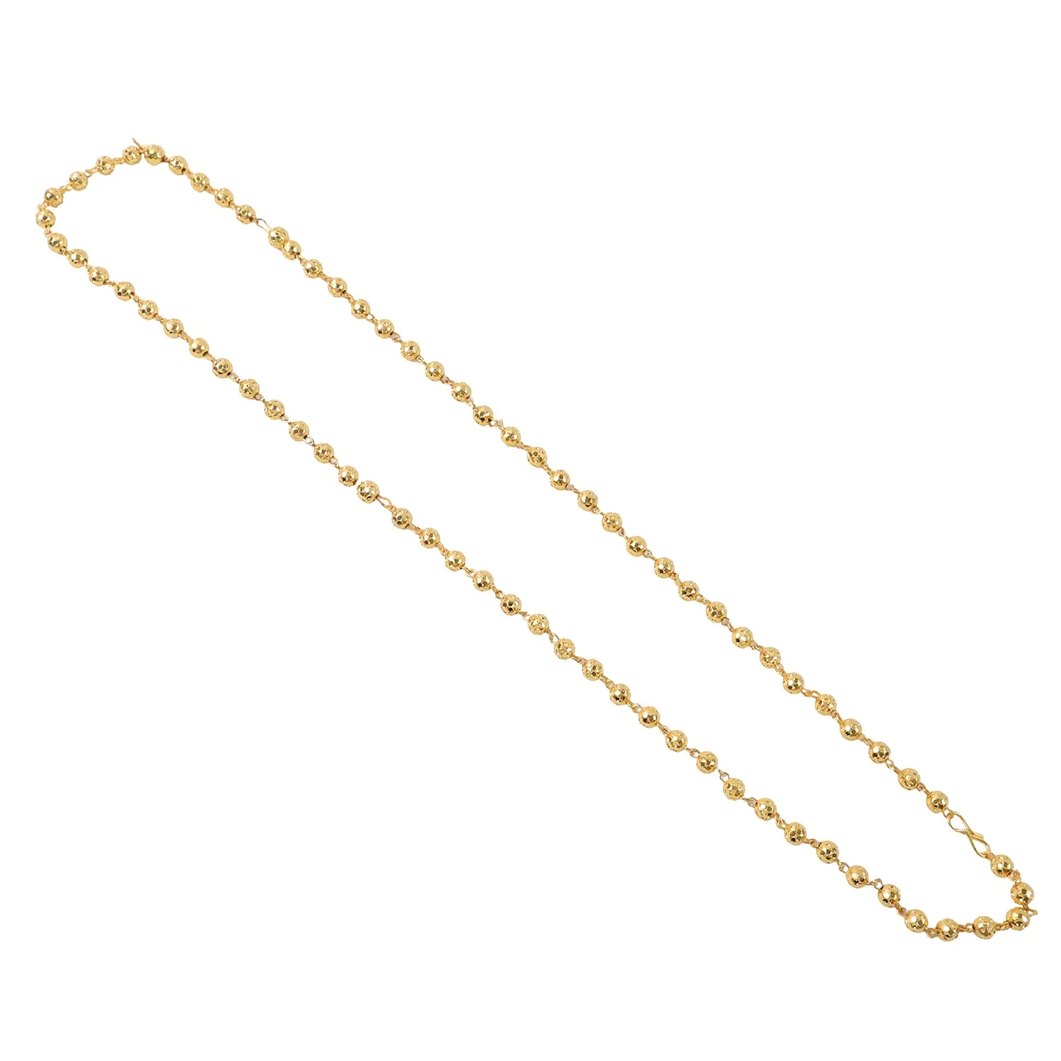 gold tone beaded necklace, long round bead necklace for women, classic gold bead chain, elegant beaded chain necklace, daily wear gold necklace, office wear necklace for women, festive occasion necklace, minimal ethnic fashion necklace, imitation gold beaded jewellery, lightweight long bead necklace, stylish gold tone necklace