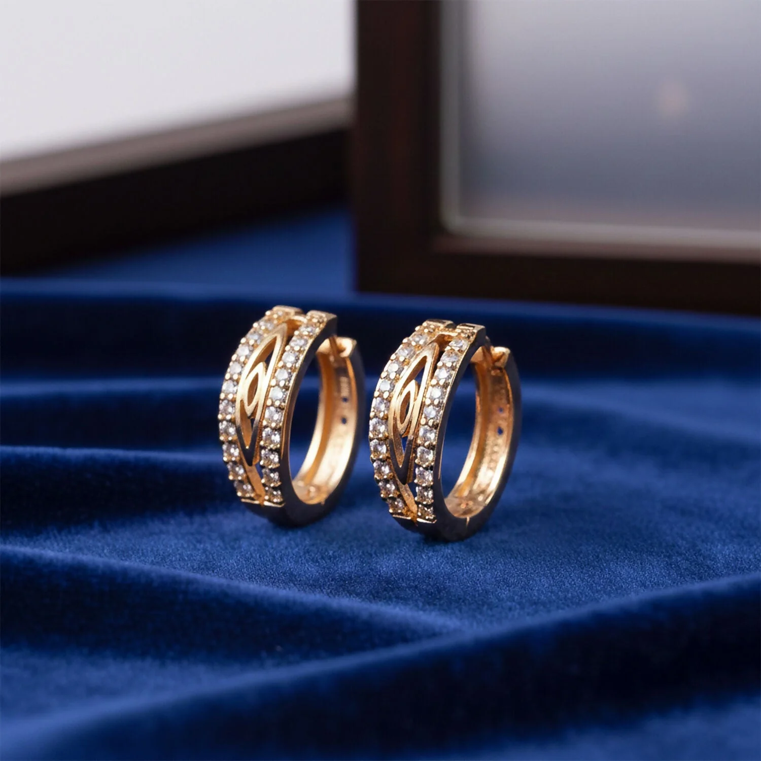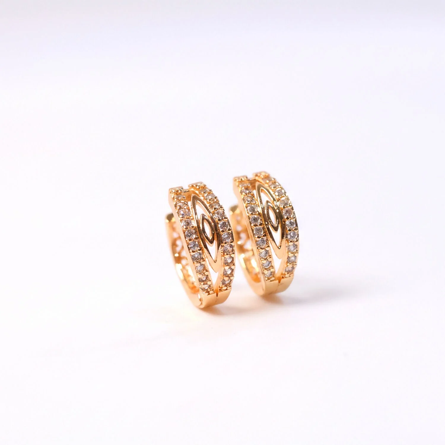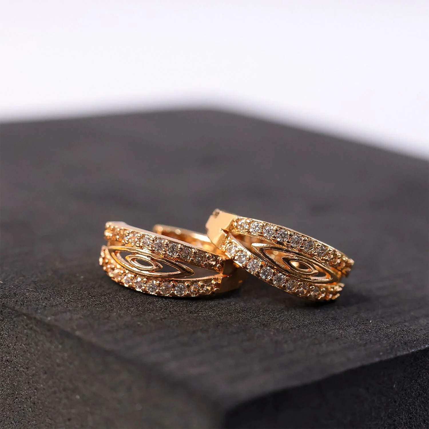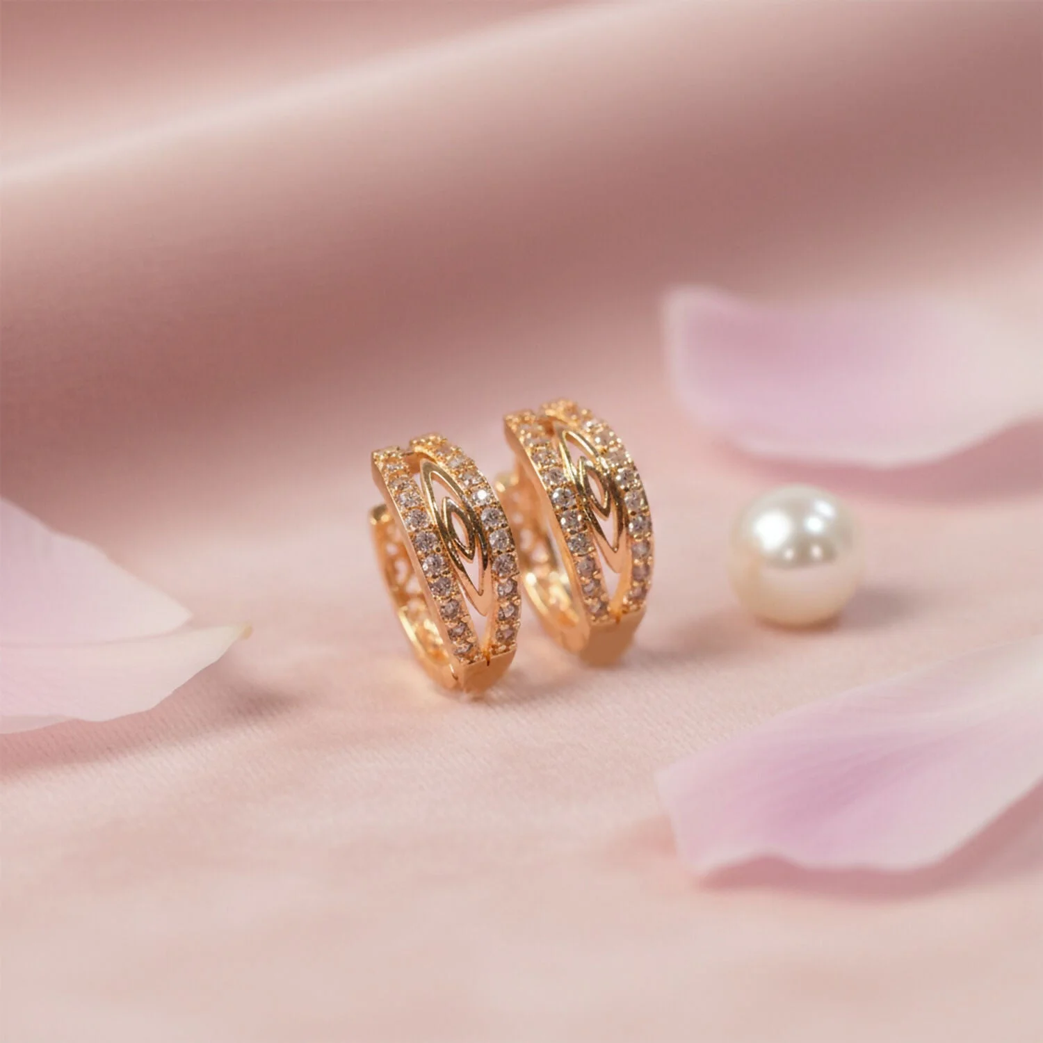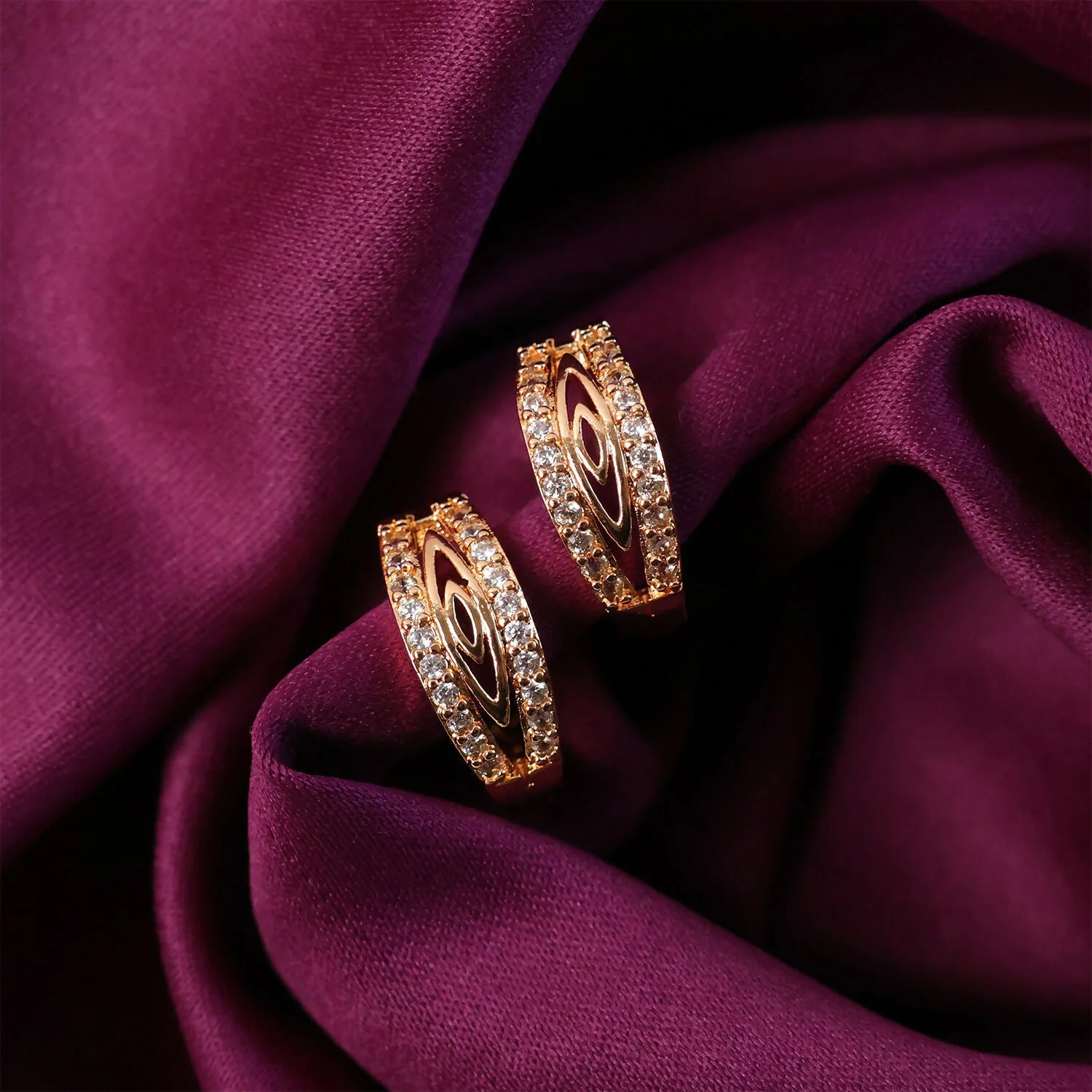 These elegant gold-tone oval hoop earrings are designed to add a refined sparkle to your look. Featuring neatly arranged CZ stones with a sleek layered pattern, they offer a perfect balance of shine and sophistication without being overdone. The compact hoop style sits comfortably on the ear, making them suitable for long hours of wear. Their versatile design pairs beautifully with ethnic outfits, western wear, and festive attire alike. Ideal for those who prefer classy jewellery with subtle glamour, these earrings are a timeless addition to any jewellery collection.
