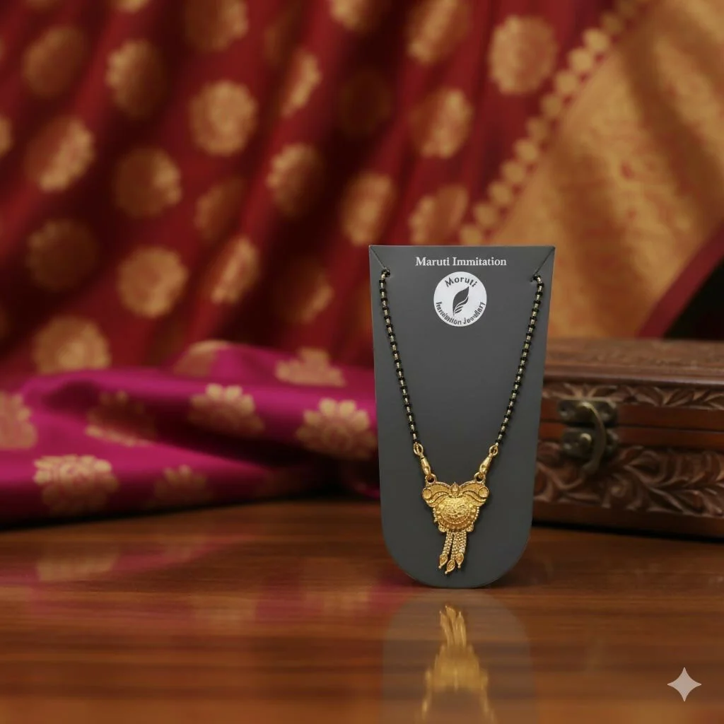 Be the first to review Elegant Gold-Tone Mangalsutra with Intricate Leaf & Dangler Pendant!