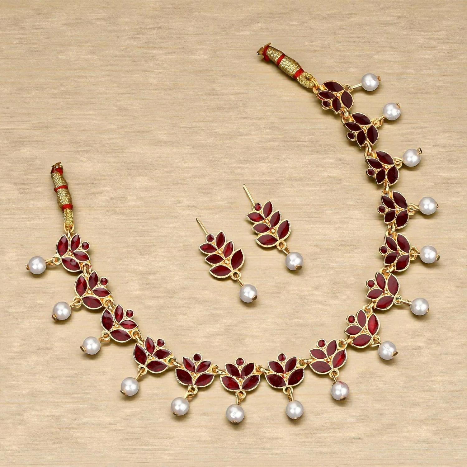 Be the first to review Elegant Gold-Tone Matte Leaf Motif Choker with Faux Pearls!