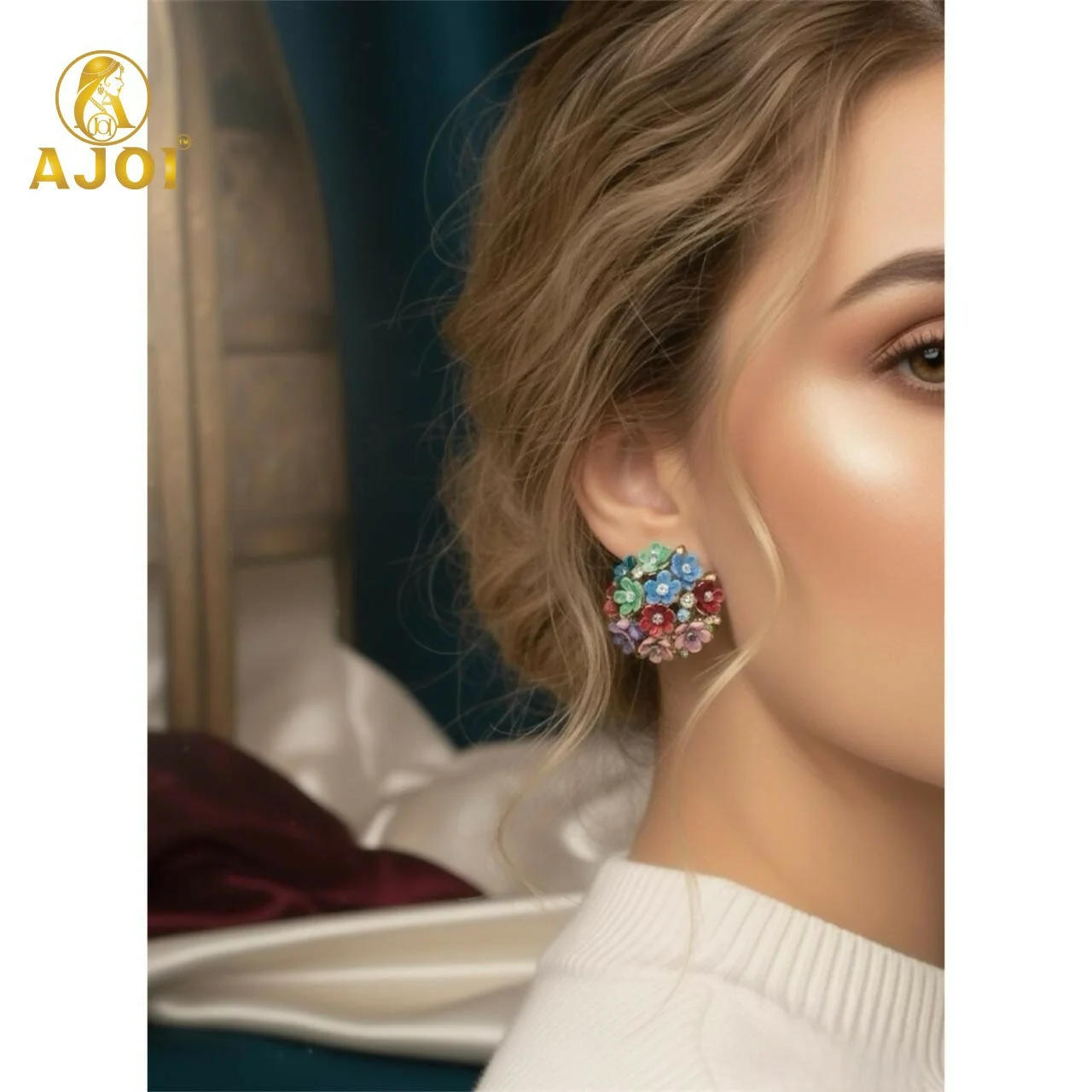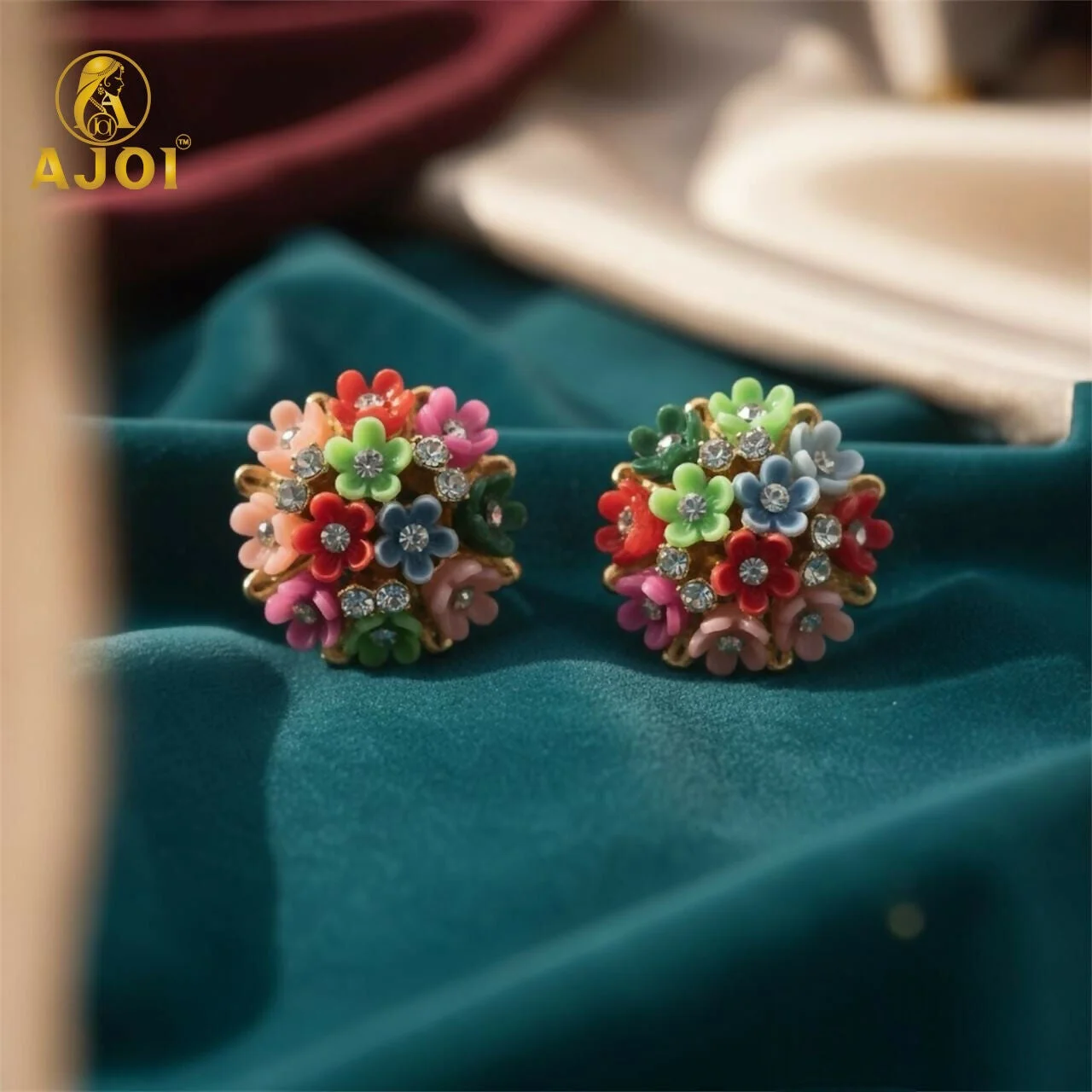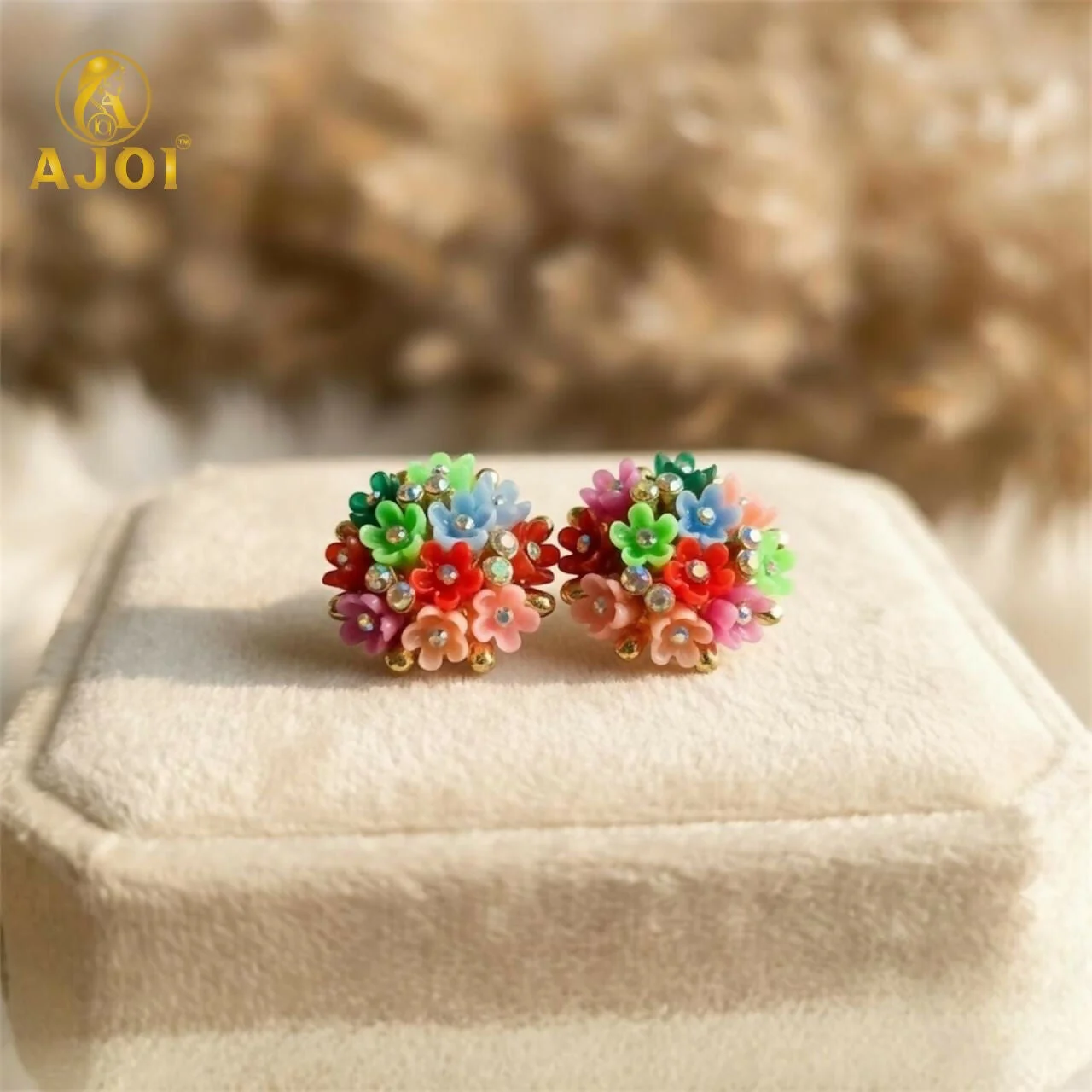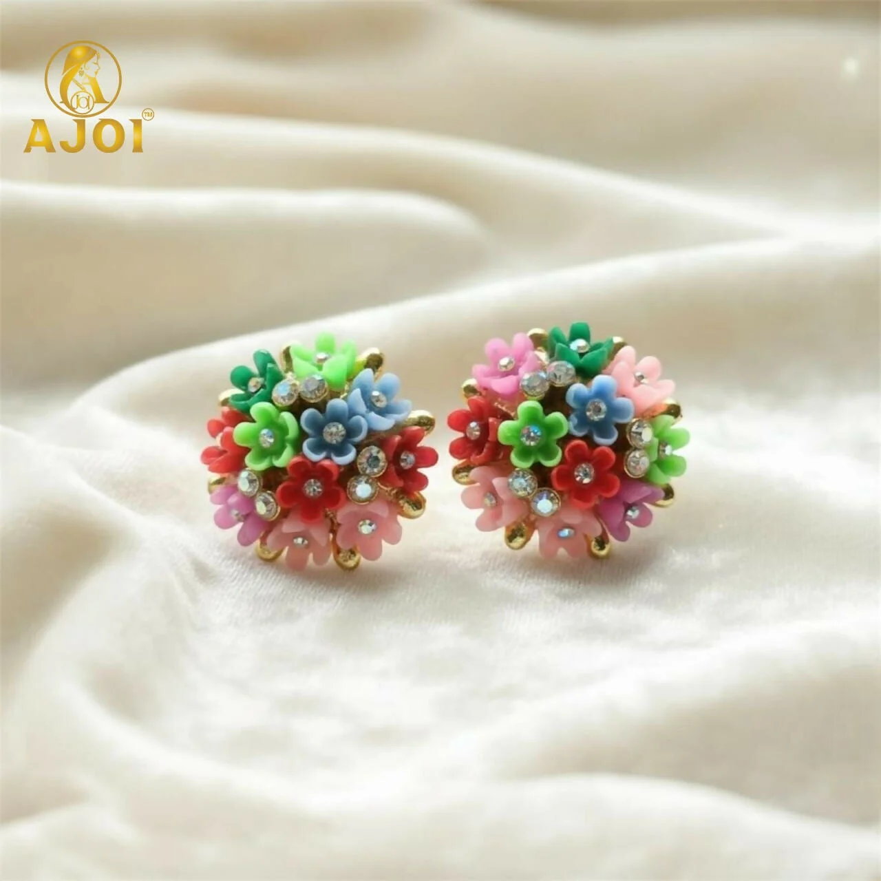 Add a pop of color and charm to your jewellery collection with these beautiful Multicolor Floral Crystal Stud Earrings. Designed to resemble a vibrant bouquet, each earring features a cluster of tiny, delicate flowers in pastel and bright shades including pink, blue, red, and green. Sparkling rhinestone crystals are placed at the center of several flowers, giving the studs a shimmering, luxurious finish.