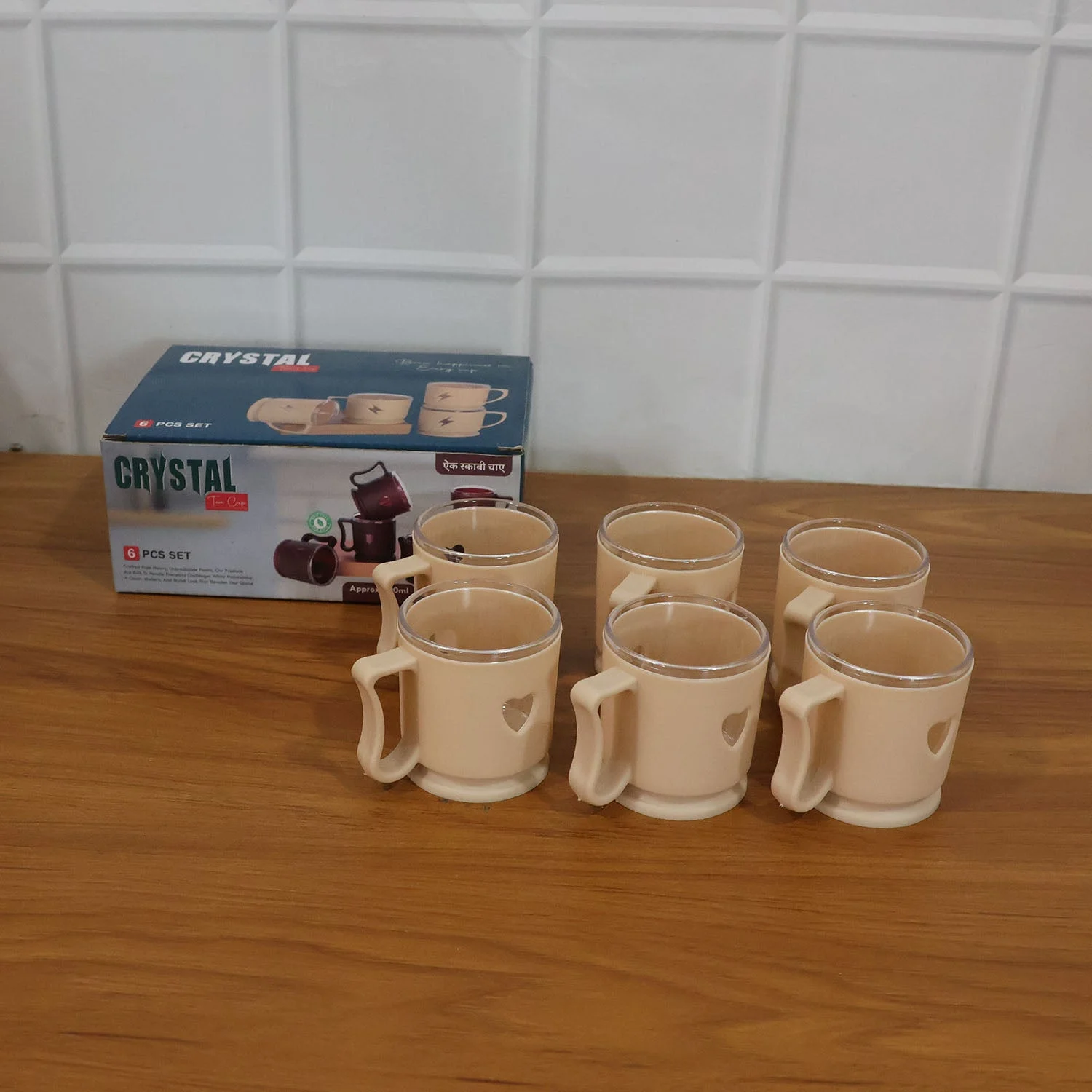 Elegant Heart Design Mini Tea & Coffee Mug Set with Handle – 100 ML Small Cup Set for Home, Office & Serving Use (Pack of 6 Pieces)