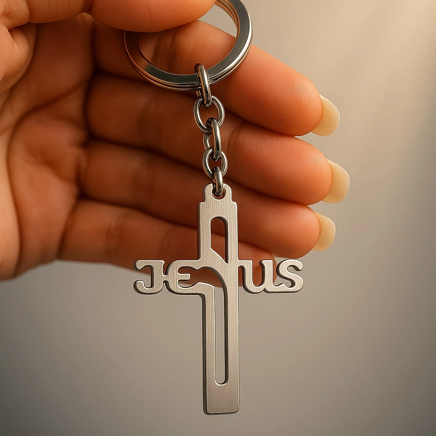 This metal cross keychain is a unique and meaningful accessory featuring the word "Jesus" beautifully inscribed in Gujarati script. Crafted from durable metal, it combines strength, elegance, and spiritual symbolism in one piece. The polished metallic finish gives it a premium look, while its lightweight structure makes it convenient for daily use. Beyond functionality, this keychain serves as an expression of faith, devotion, and cultural connection. Whether used personally or gifted to a loved one, it is a timeless keepsake with deep spiritual value.