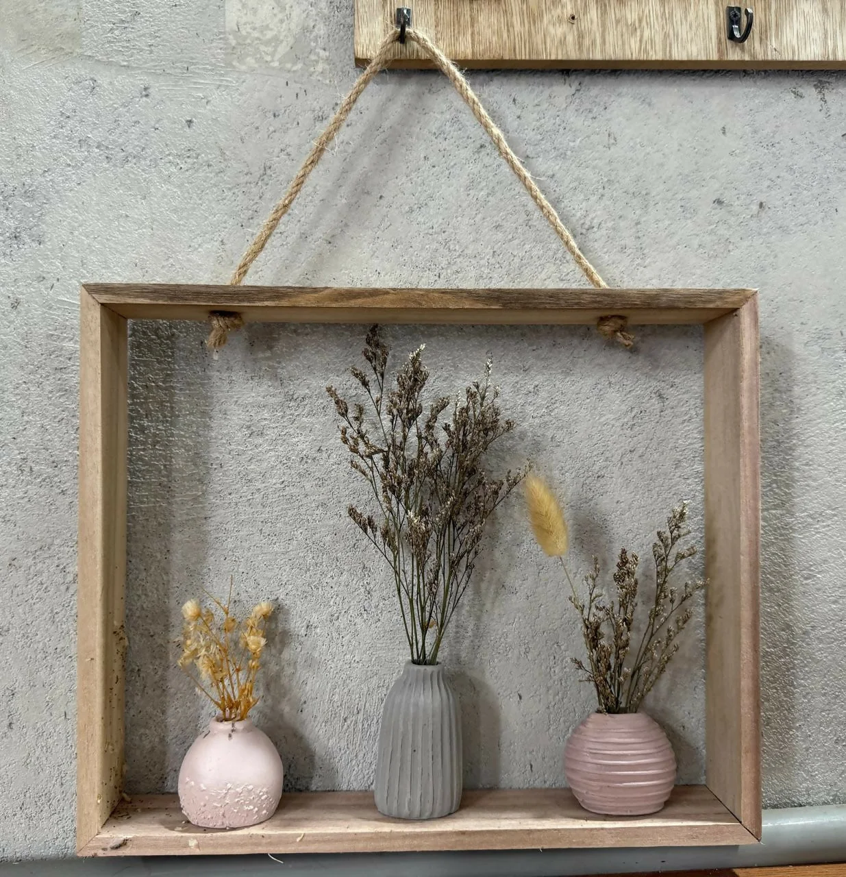wooden frame vase set, ceramic vase with dried flowers, boho home décor, rustic tabletop decoration, Nordic style vase, minimalist vase arrangement, living room shelf décor, bedroom decoration ideas, farmhouse vase set, housewarming gift, elegant home accessory, wall mount décor, vintage floral display, unique vase set for gift, dried flower arrangement with frame.