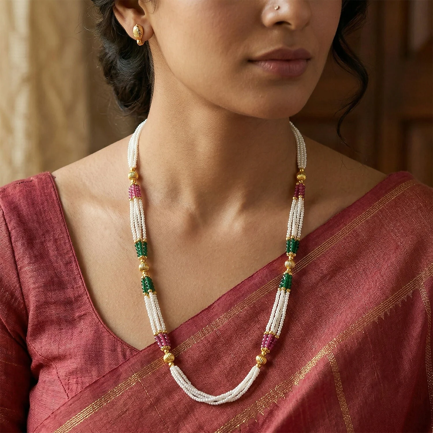 Be the first to review Elegant Multi Color Beaded Traditional Mala with Gold Accents for Women!