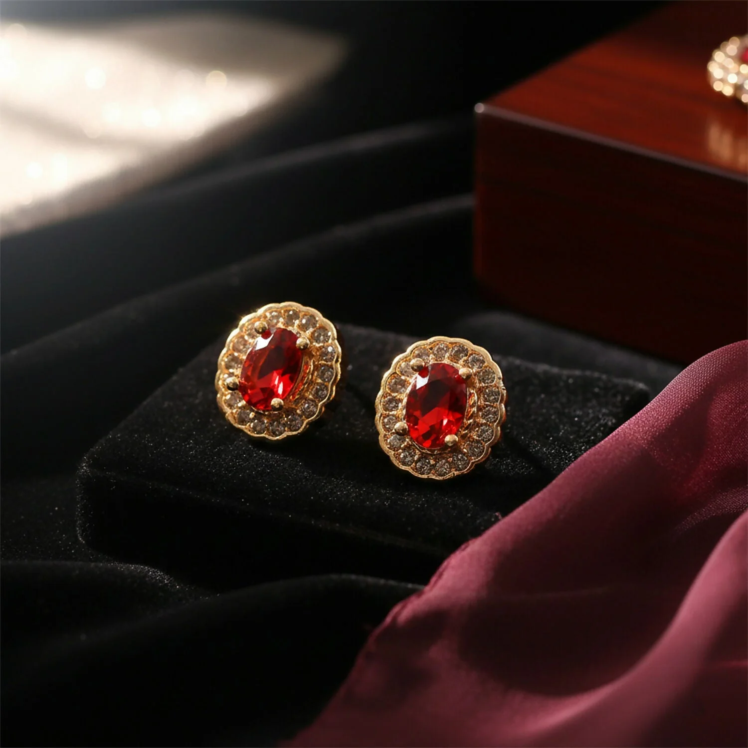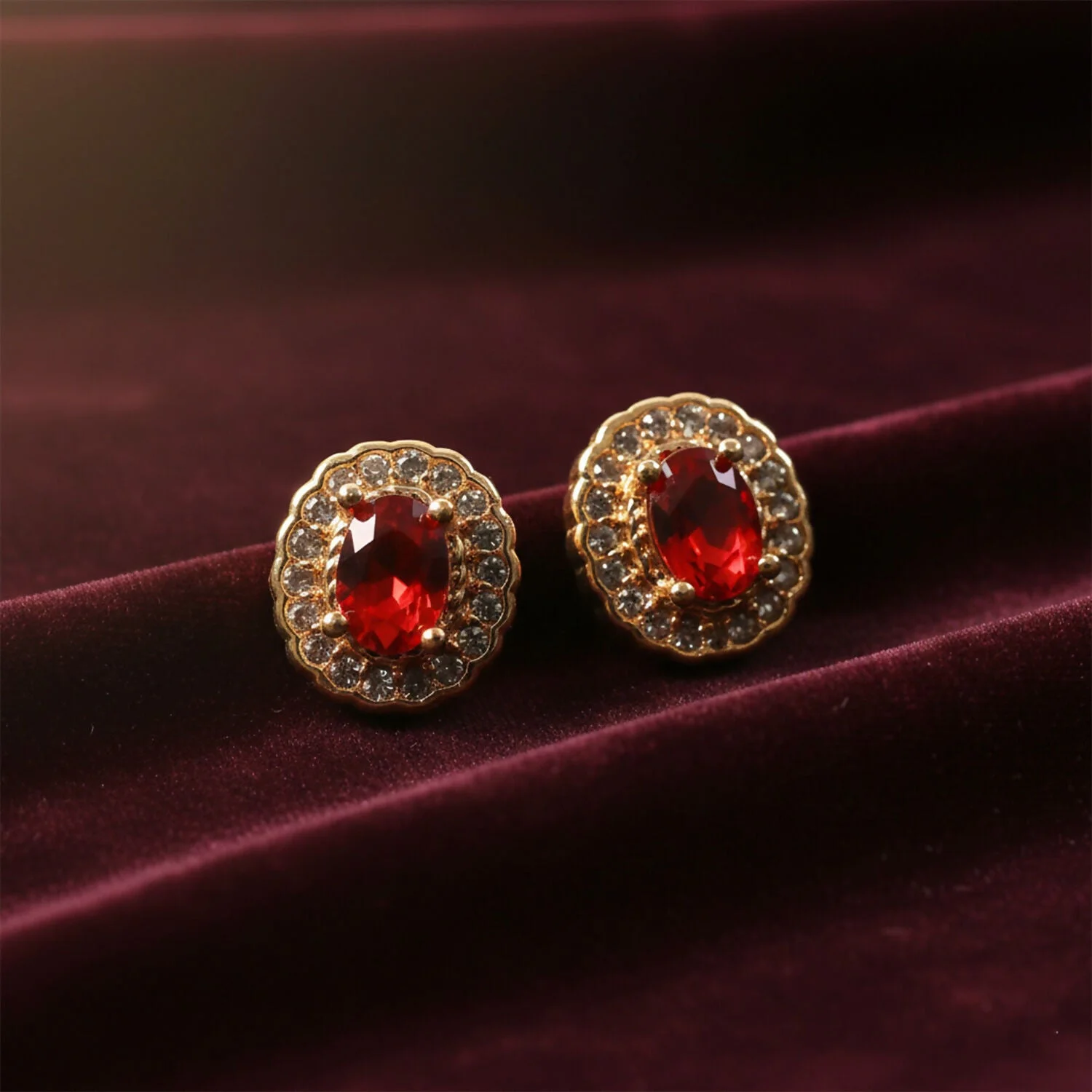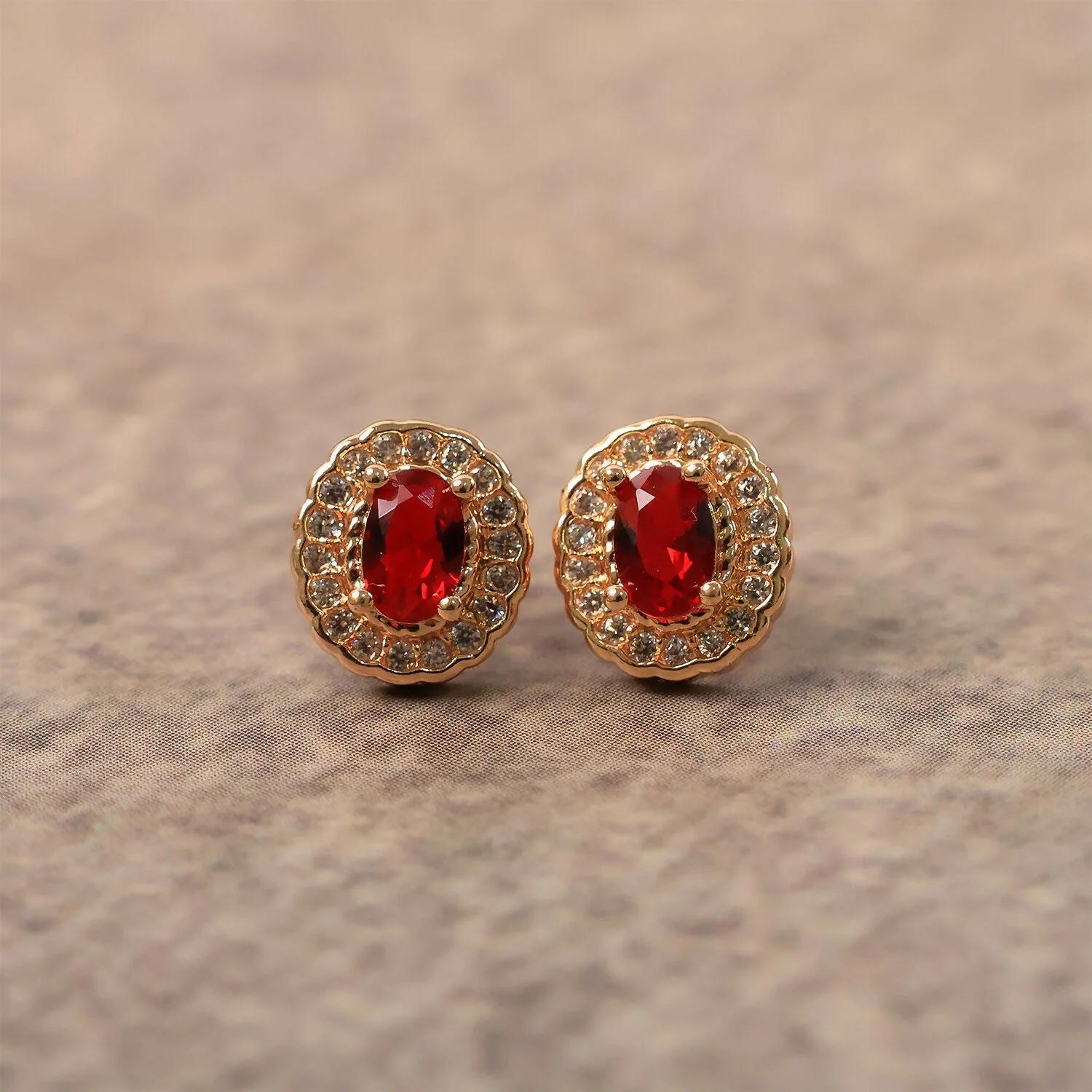 Be the first to review Elegant Oval Red Stone Stud Earrings with Crystal Halo Design!