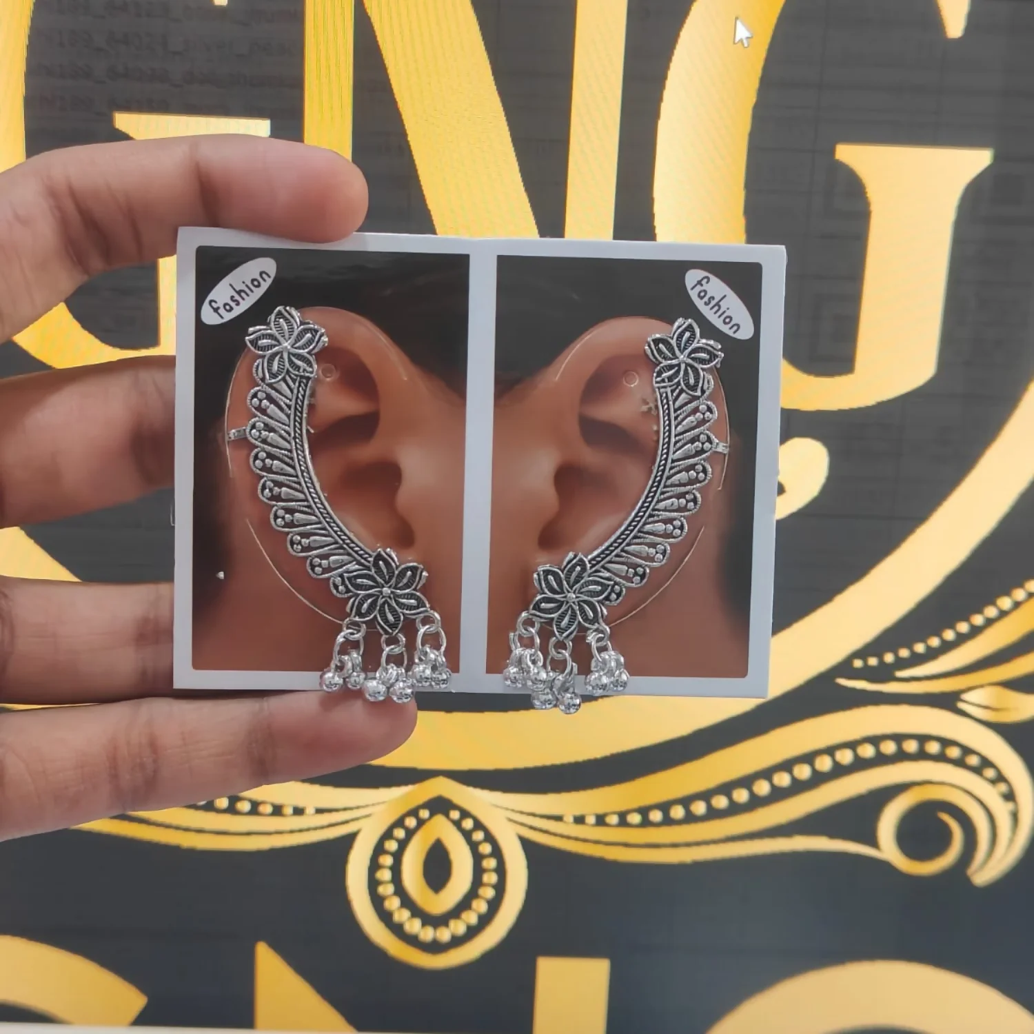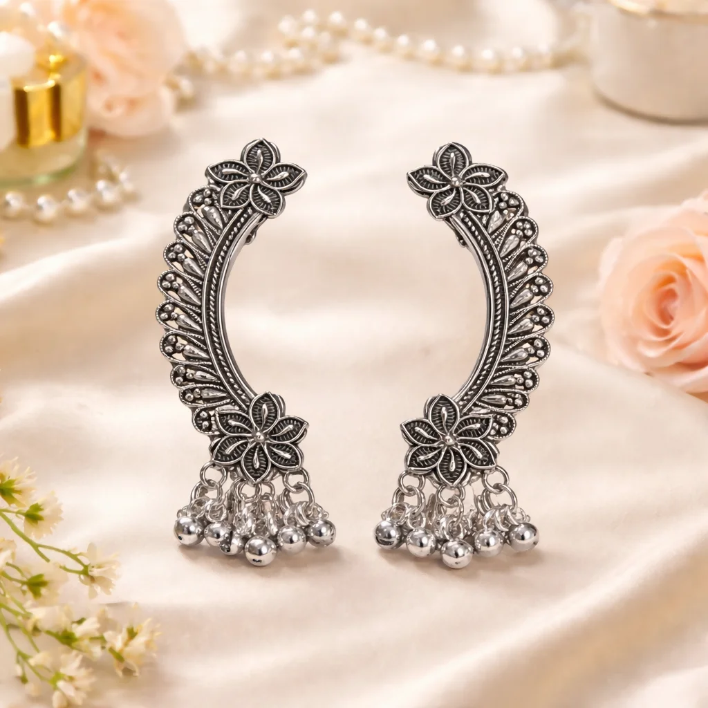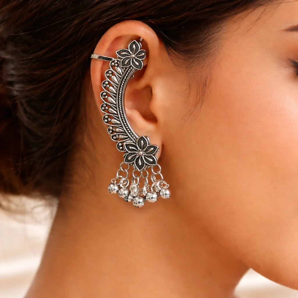 Be the first to review Elegant Oxidised Silver Ear Cuff Earrings with Ghungroo for Women!