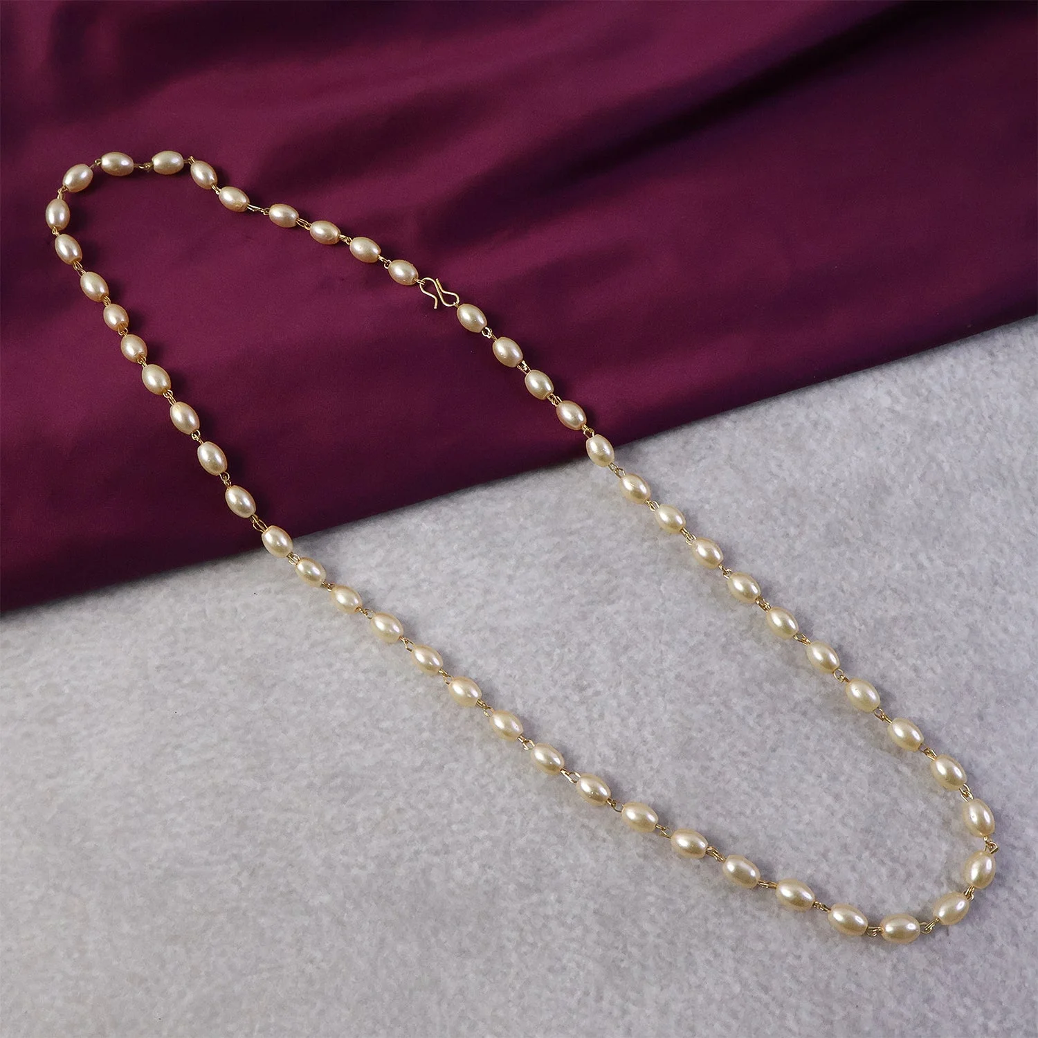 elegant pearl beaded necklace, single line pearl necklace for women, imitation pearl necklace, pearl necklace with golden chain accents, classic pearl jewellery, minimal pearl necklace, daily wear pearl necklace, office wear pearl jewellery, lightweight pearl necklace, women fashion pearl necklace, artificial pearl necklace chain