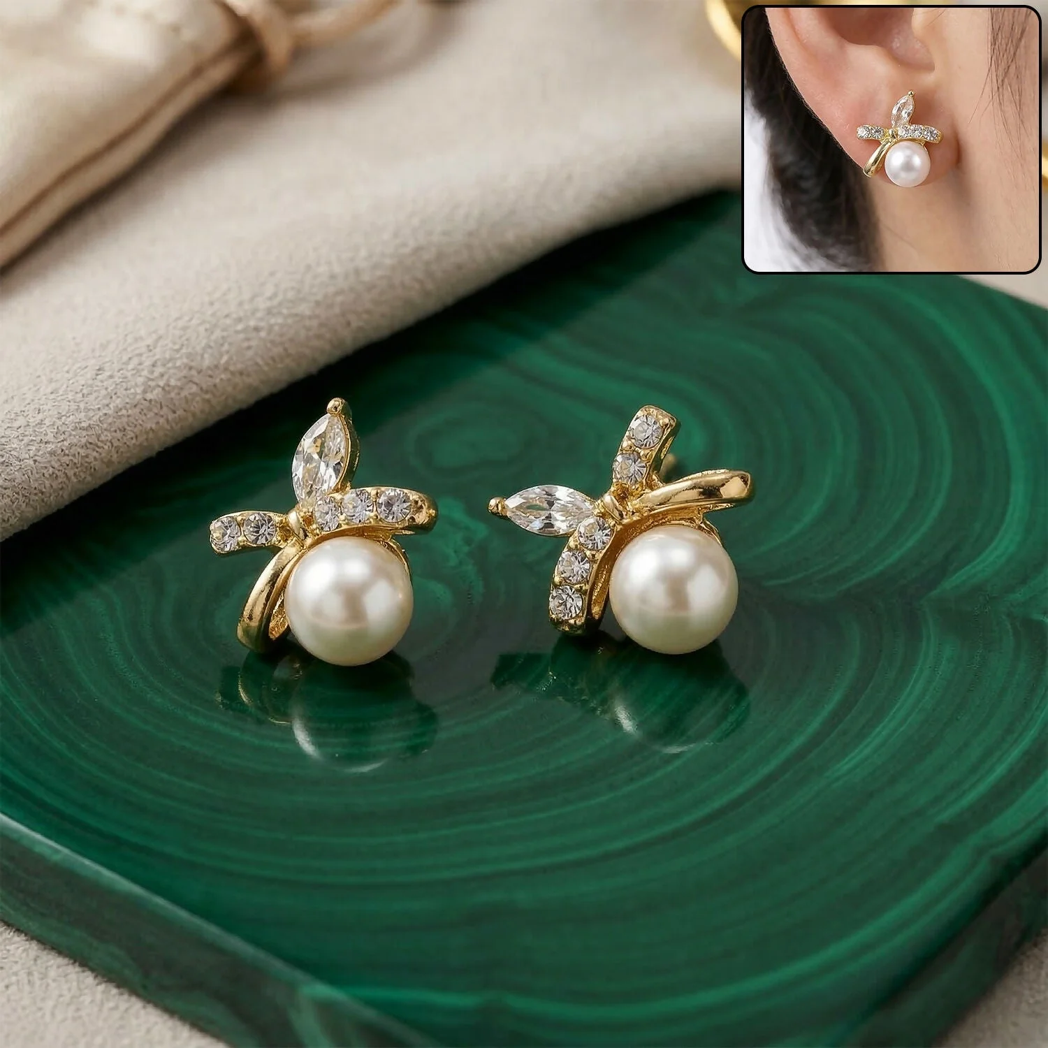 Be the first to review Elegant Pearl Butterfly Design Stud Earrings for Women and Girls!