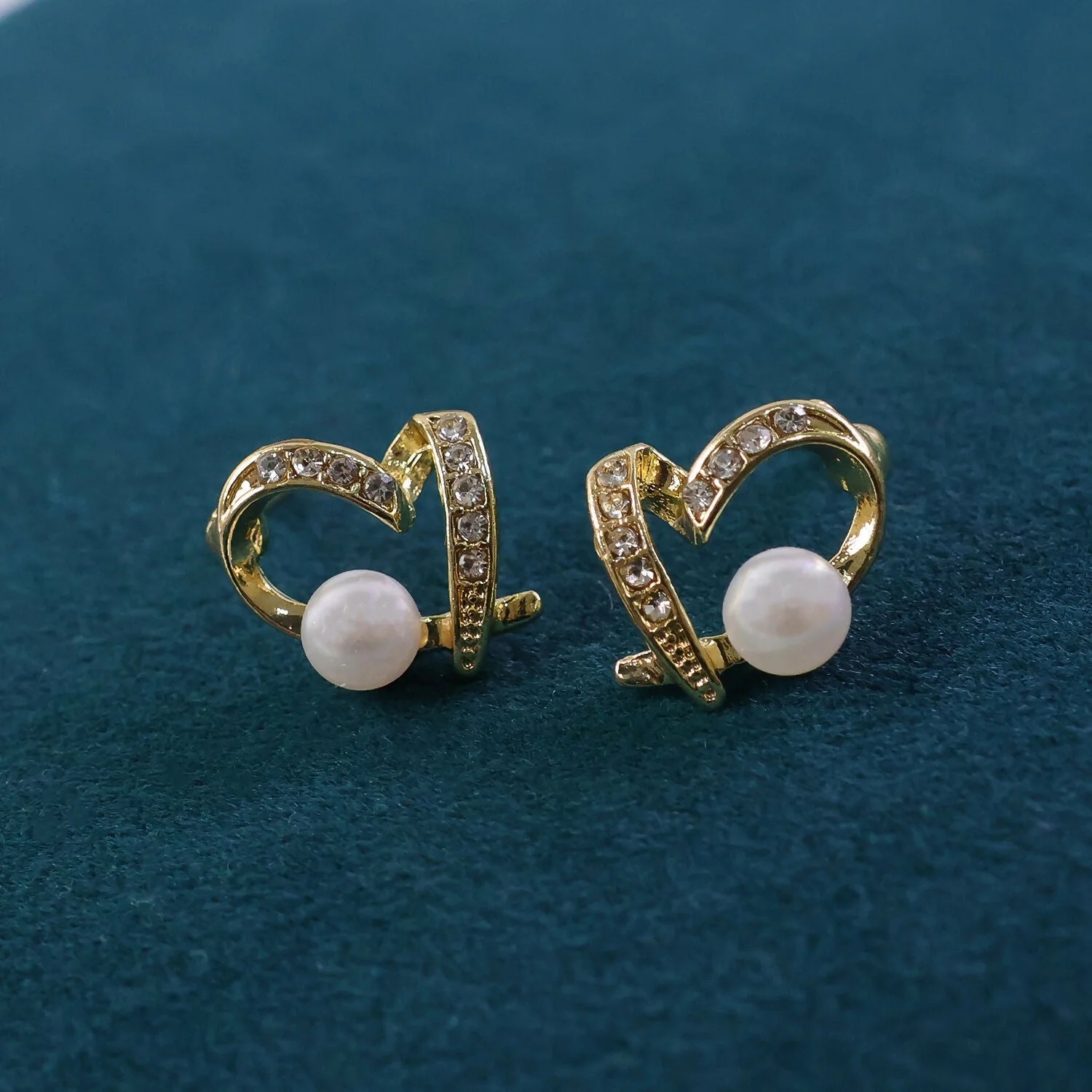 Be the first to review Elegant Pearl & Crystal Heart Design Stud Earrings for Women!