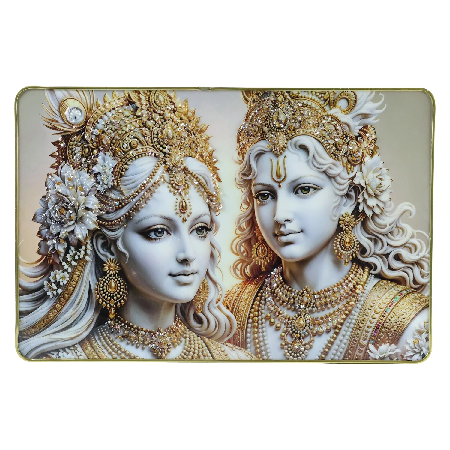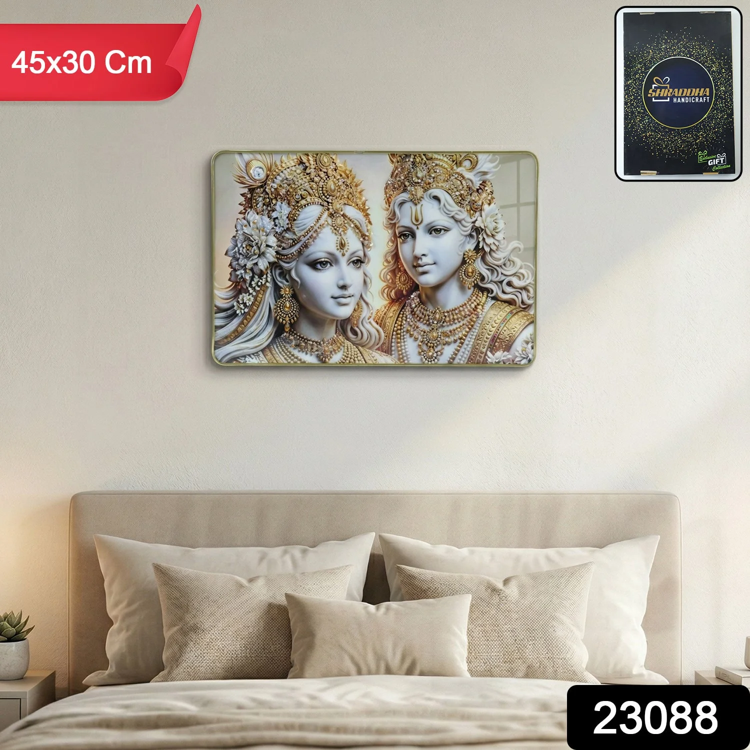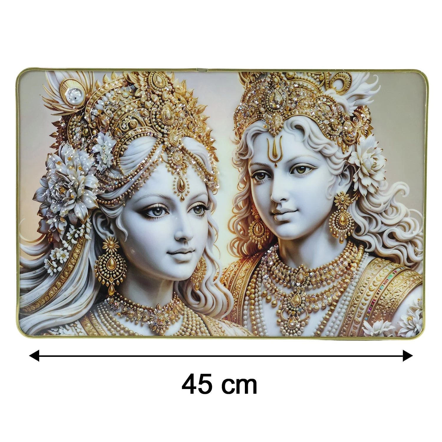 Elegant Radha Krishna Golden Finish Wall Art Frame 45x30 Cm 1 Pc – Premium Spiritual Decorative Panel for Bedroom Living Room Temple Aesthetic Home Decor