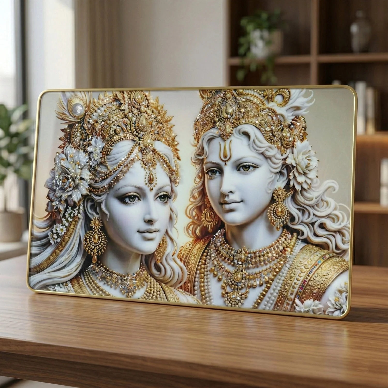 When your home decor feels dull or lacks richness, adding a premium touch can make all the difference. The Golden Finish Wall Art Frame with Radha & Krishna Photo offers a luxurious look with its gold finish, making it a standout piece in luxury god wall decor India collections.