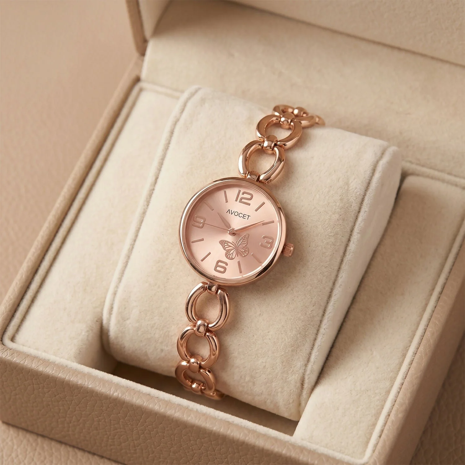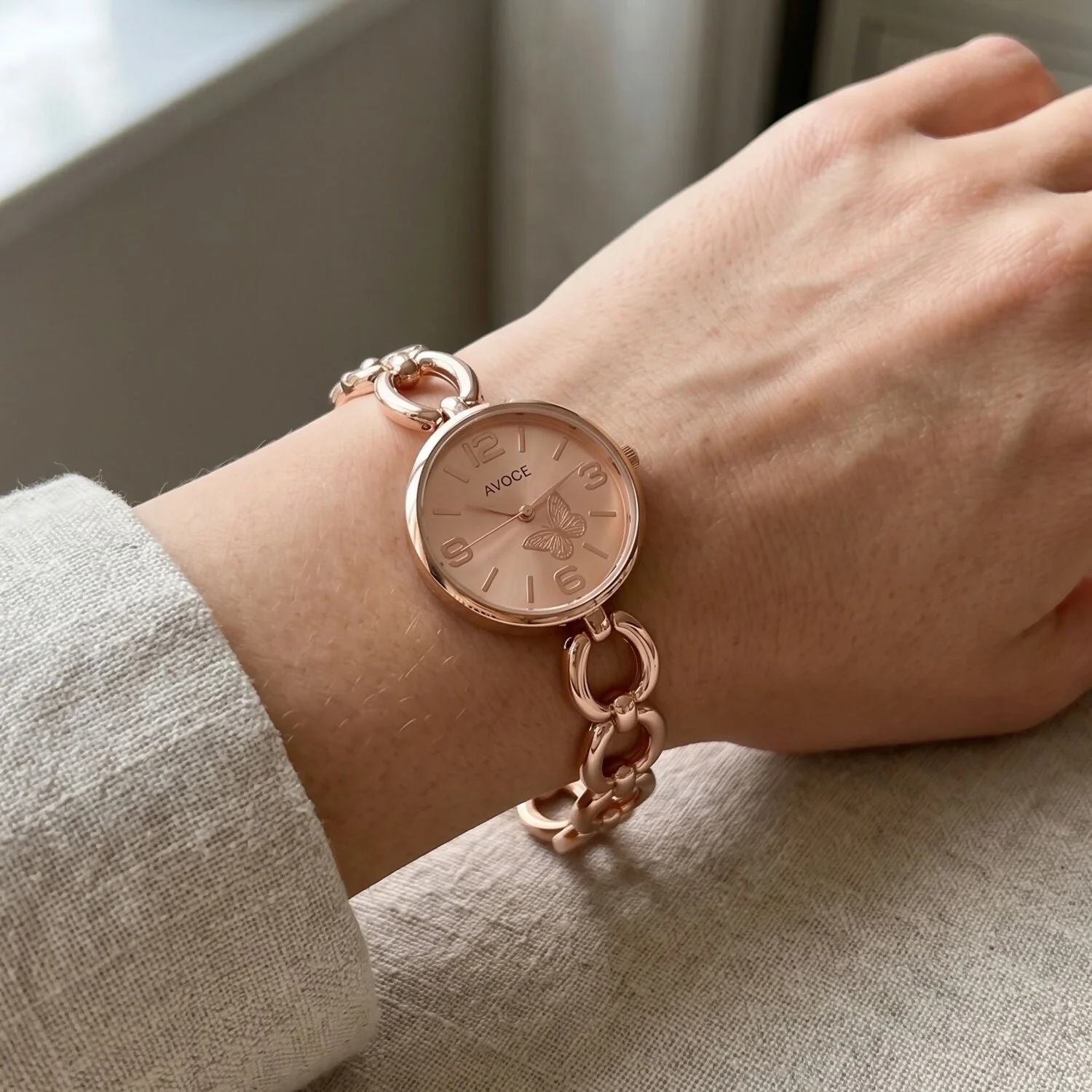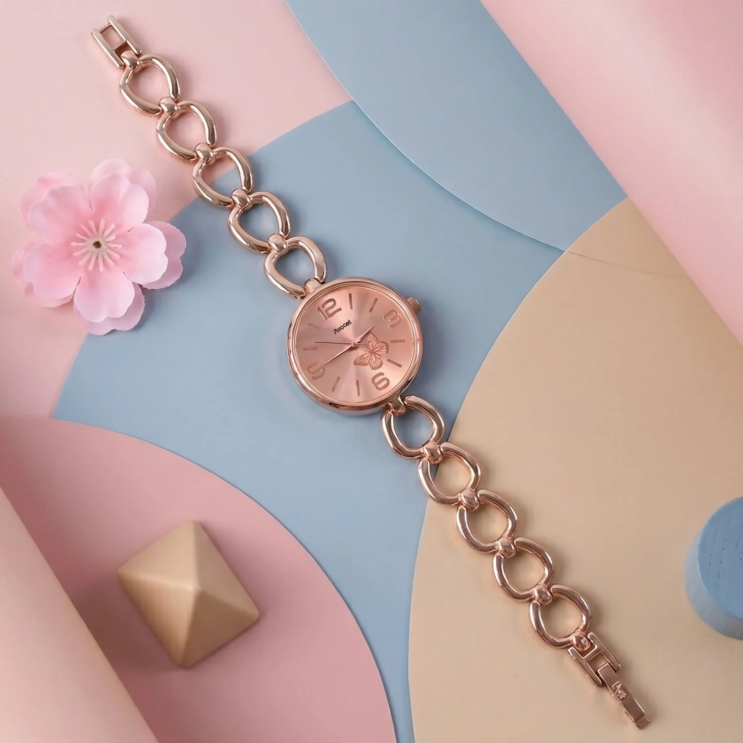 Be the first to review Elegant Rose Gold Chain Strap Women’s Wrist Watch with Butterfly Dial Design!