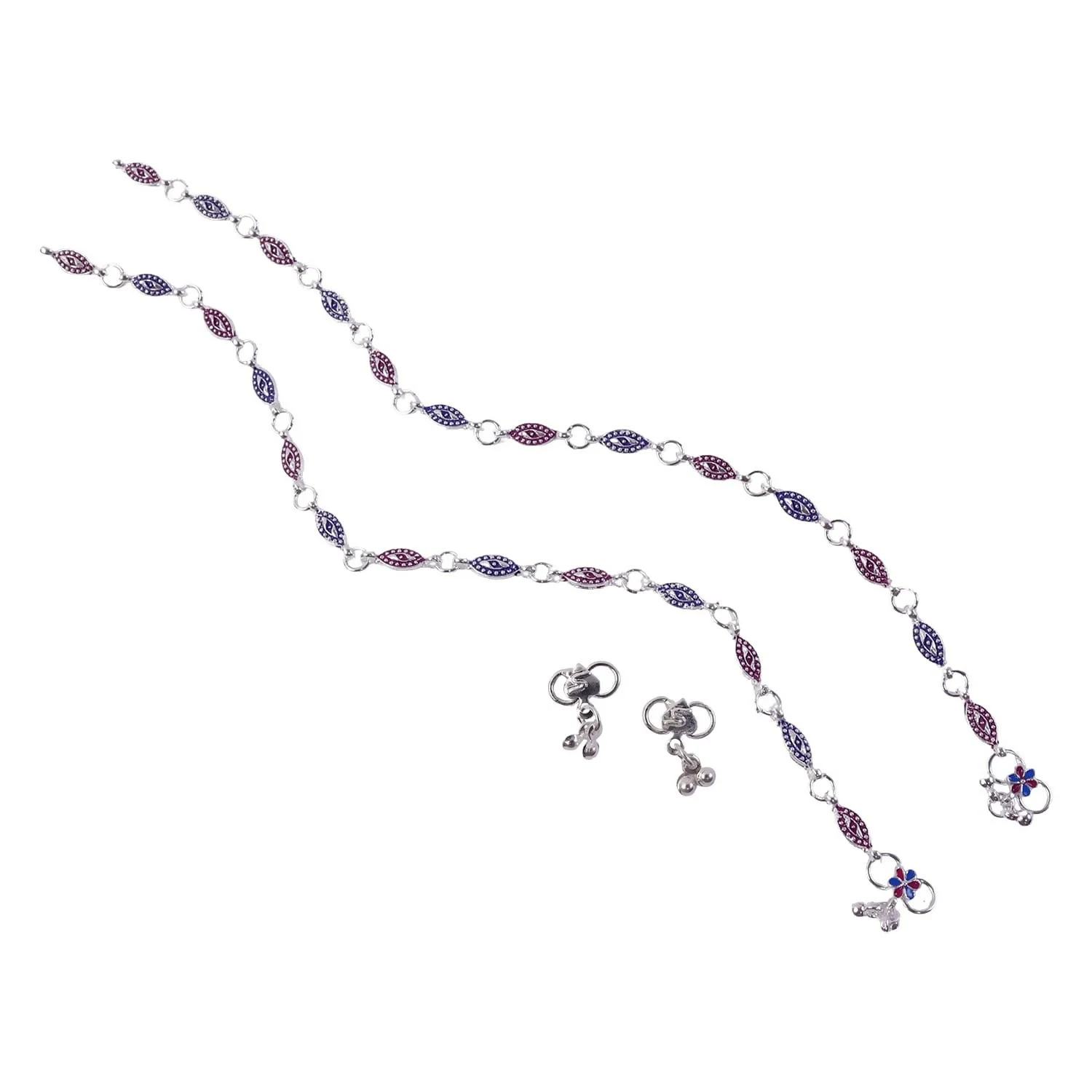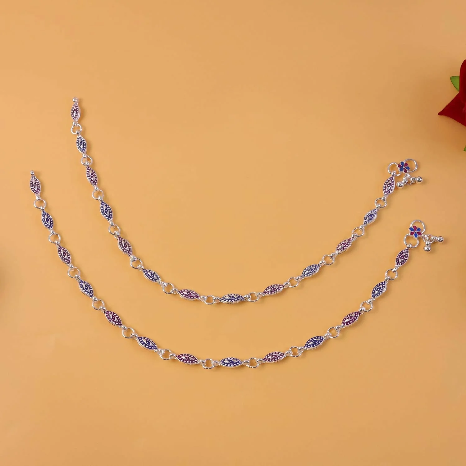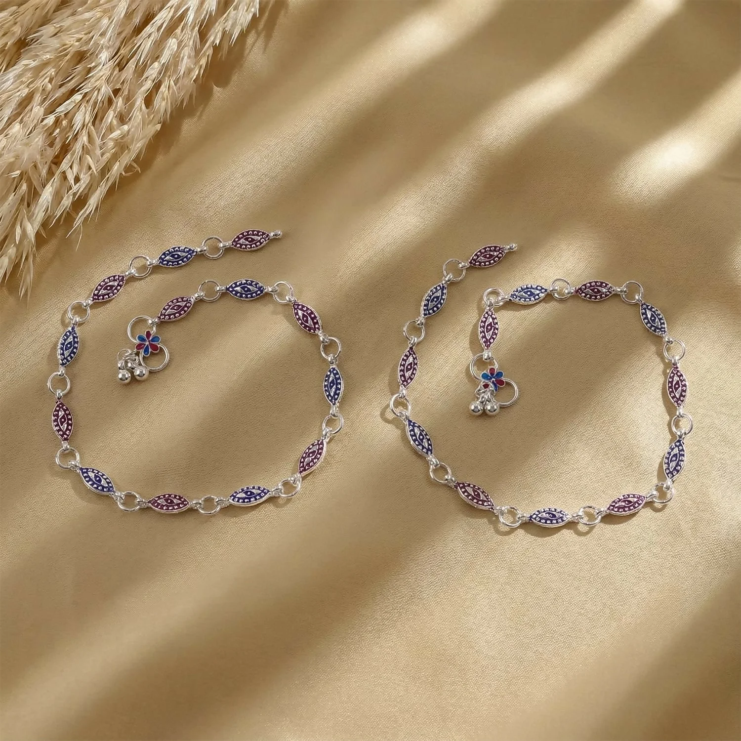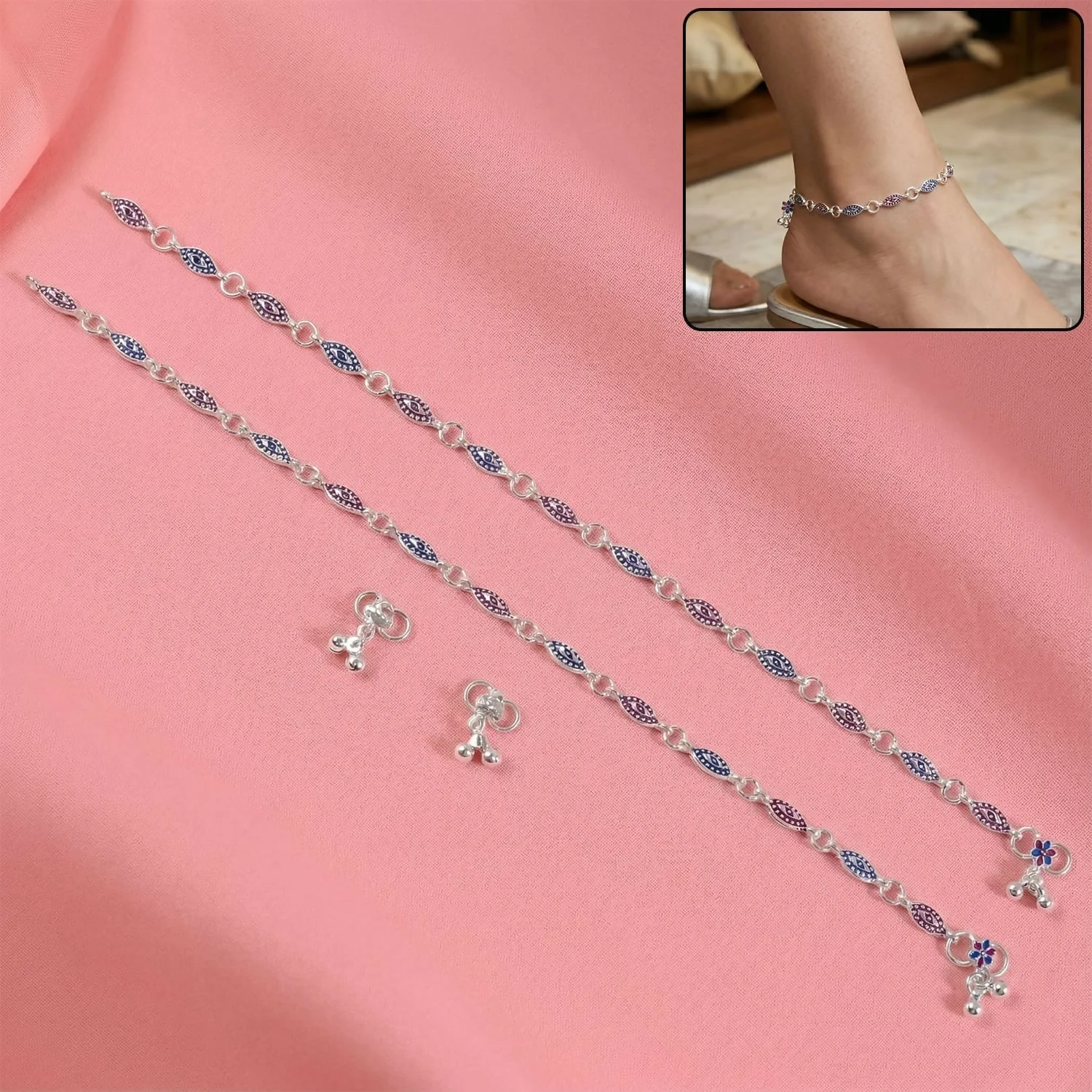 Be the first to review Elegant Silver Enamel Leaf Anklet Pair with Floral Charm!