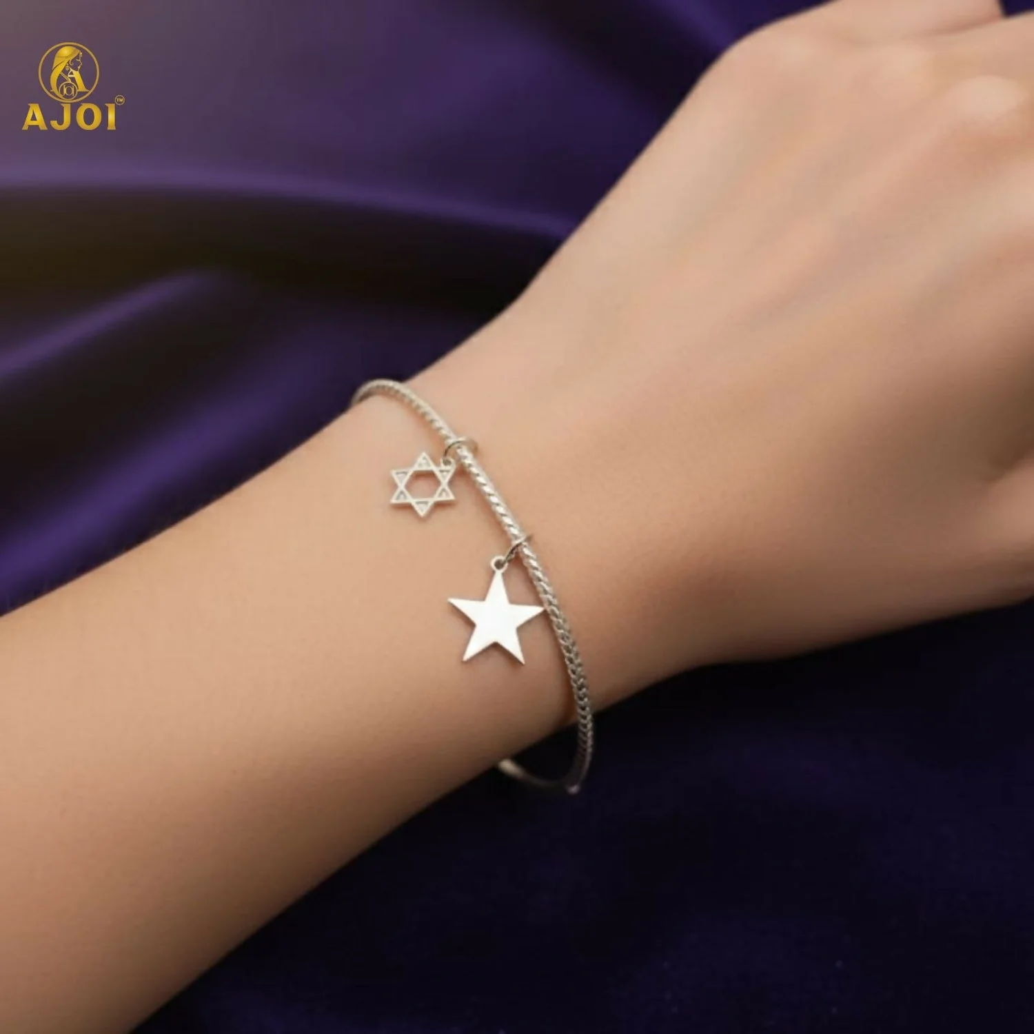 Be the first to review Elegant Silver Star & Hexagon Charm Bracelet!