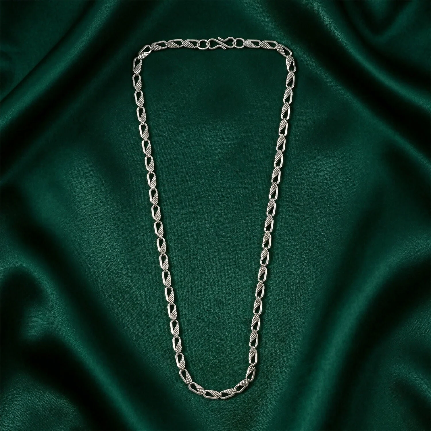 Enhance your everyday look with this premium silver finish designer chain necklace, crafted for a sleek and modern style. Featuring a refined interlocking link pattern, this chain offers a perfect balance of simplicity and elegance, making it suitable for both casual and formal outfits.