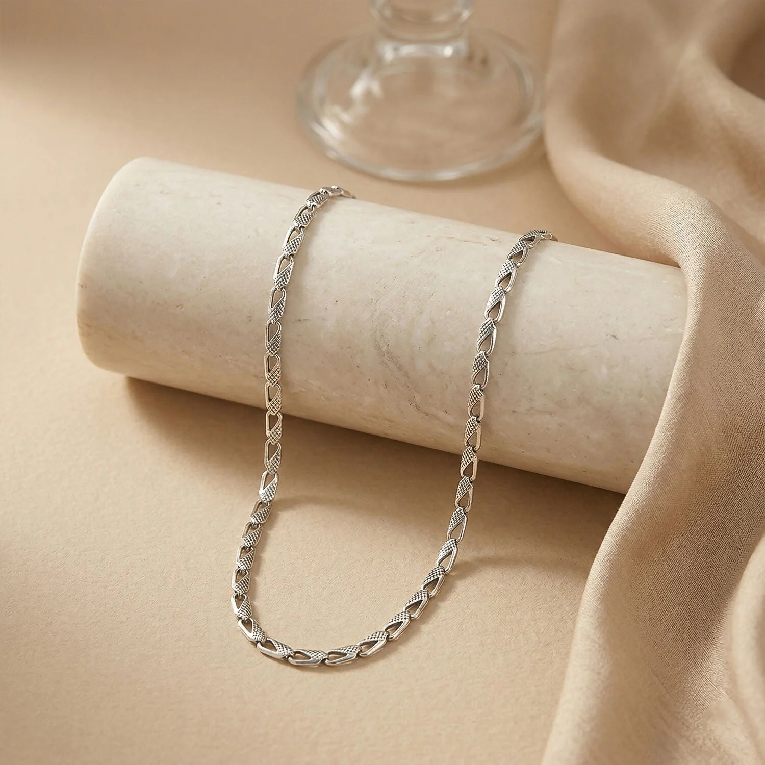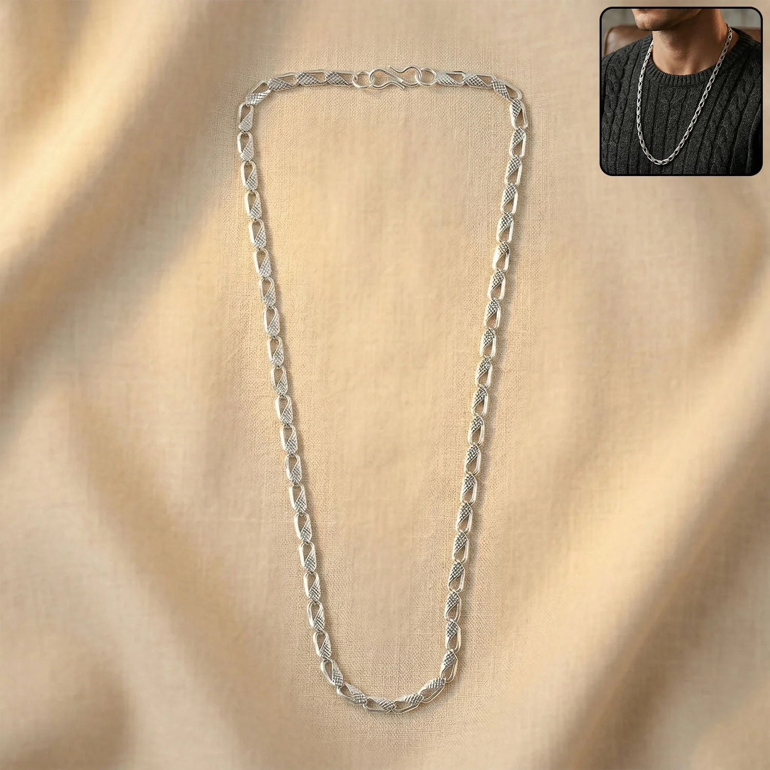 Be the first to review Elegant Silver Tone Textured Chain Necklace for Men & Women!