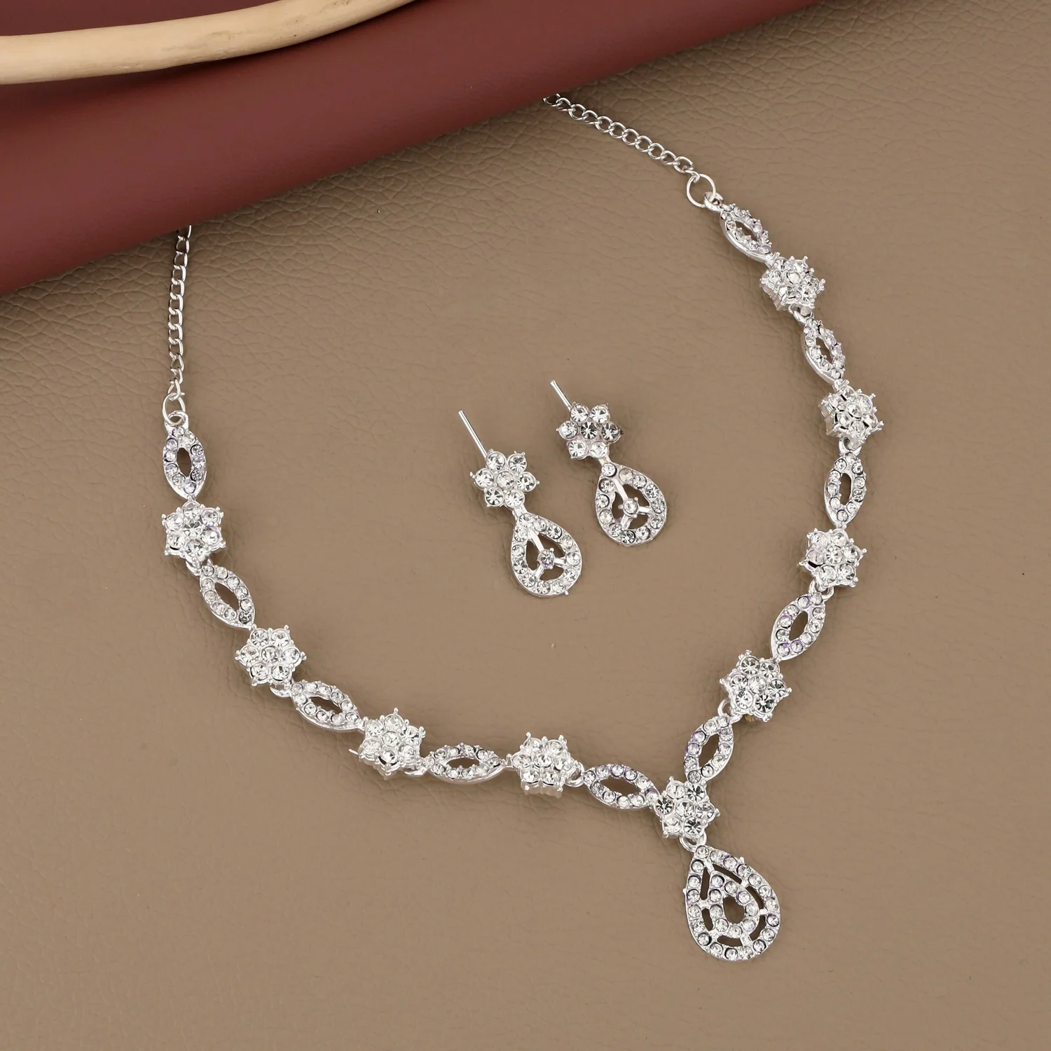 Be the first to review Elegant Silver-Toned American Diamond Jewellery Set!