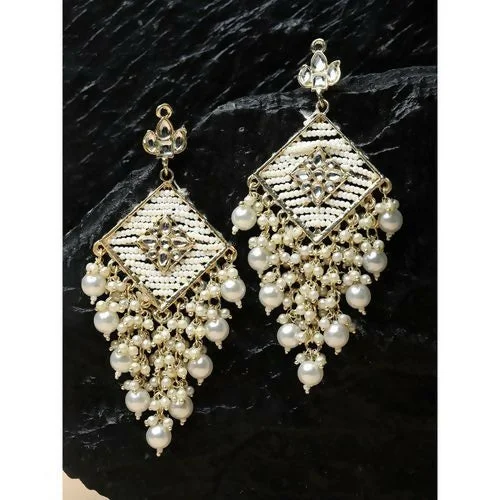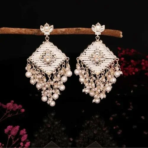 Be the first to review Elegant Silver-Toned Kundan Chandelier Earrings with Traditional Pearl Jhumka Drops!