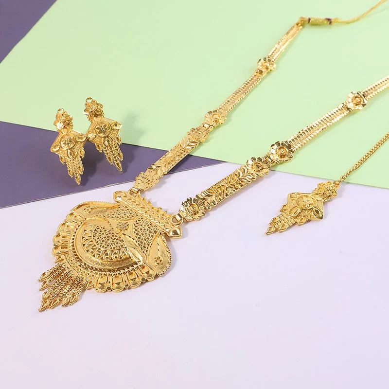 Be the first to review Elegant Traditional Gold-Plated Long Necklace Set for Bridal & Festive Wear!