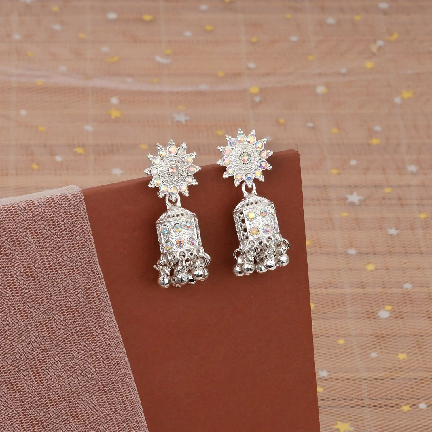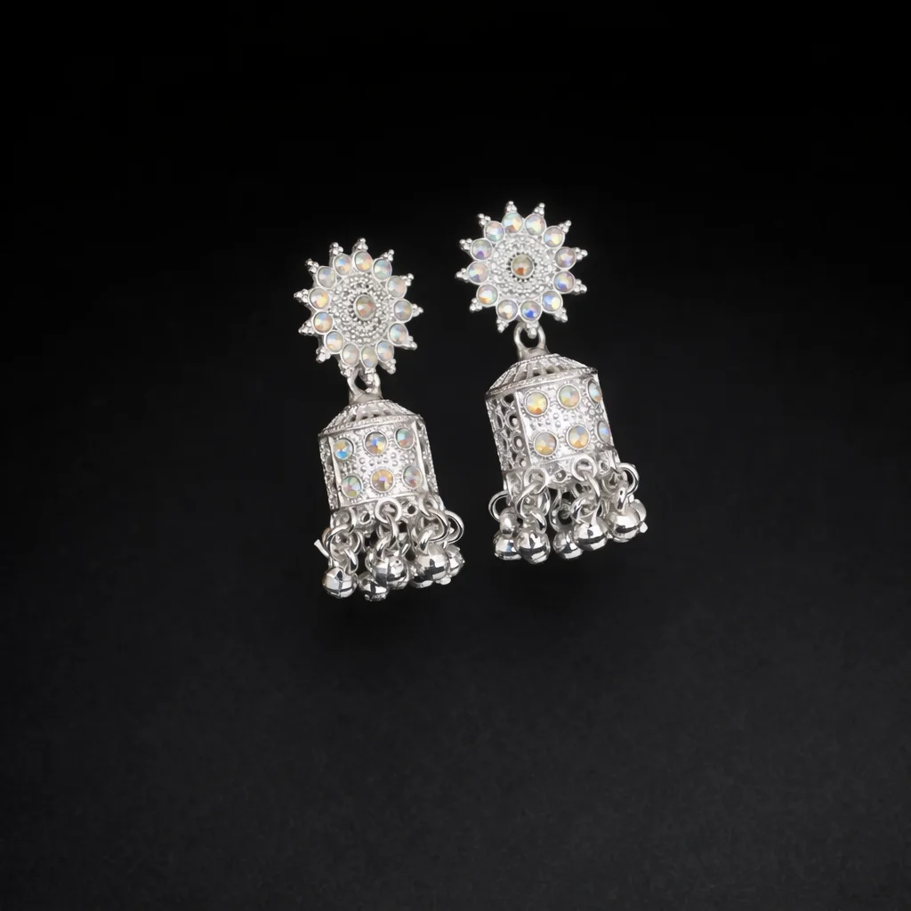 Elegant Silver Look Jhumka Earrings ✨