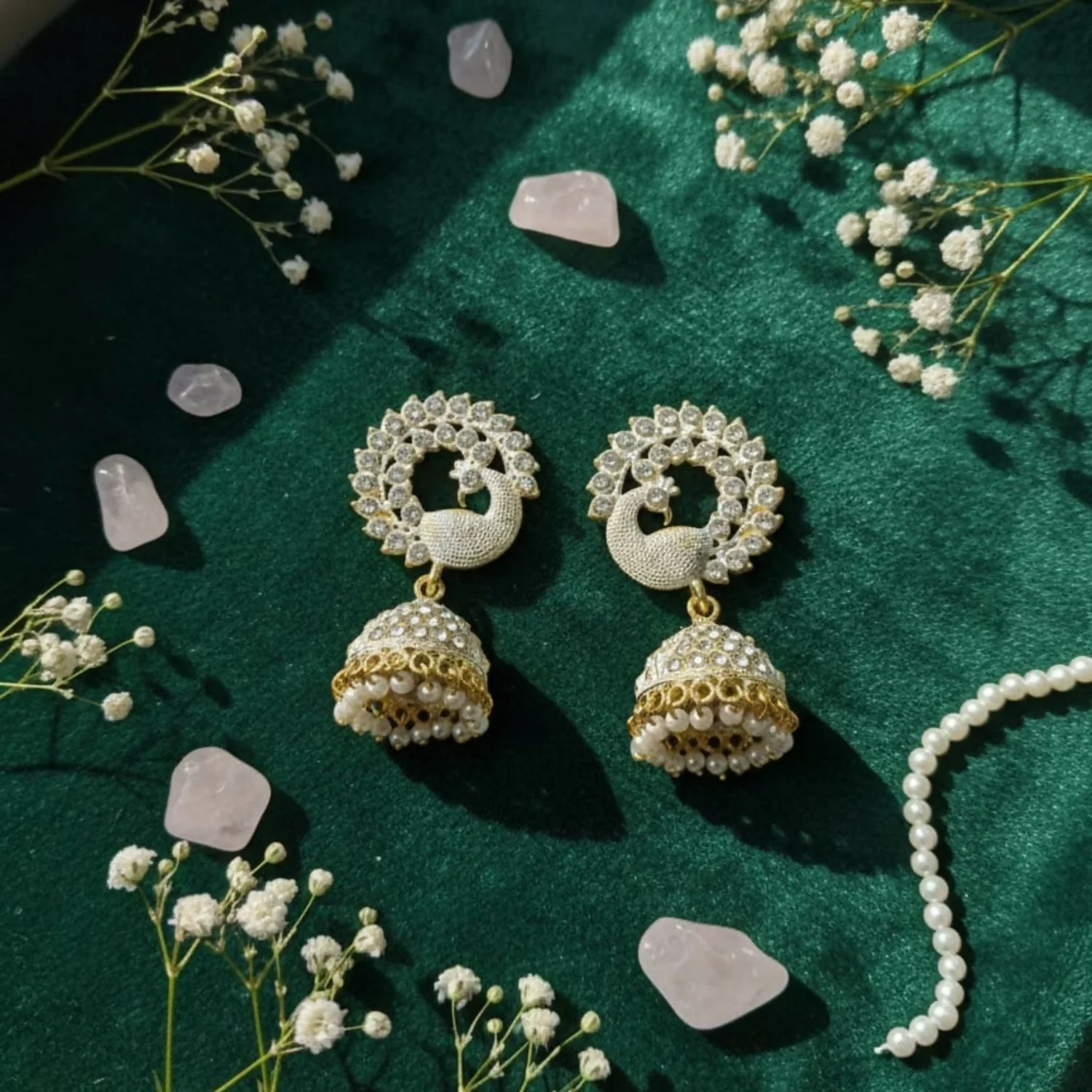 Be the first to review Elegant White Stone Pearl Jhumka Earrings!