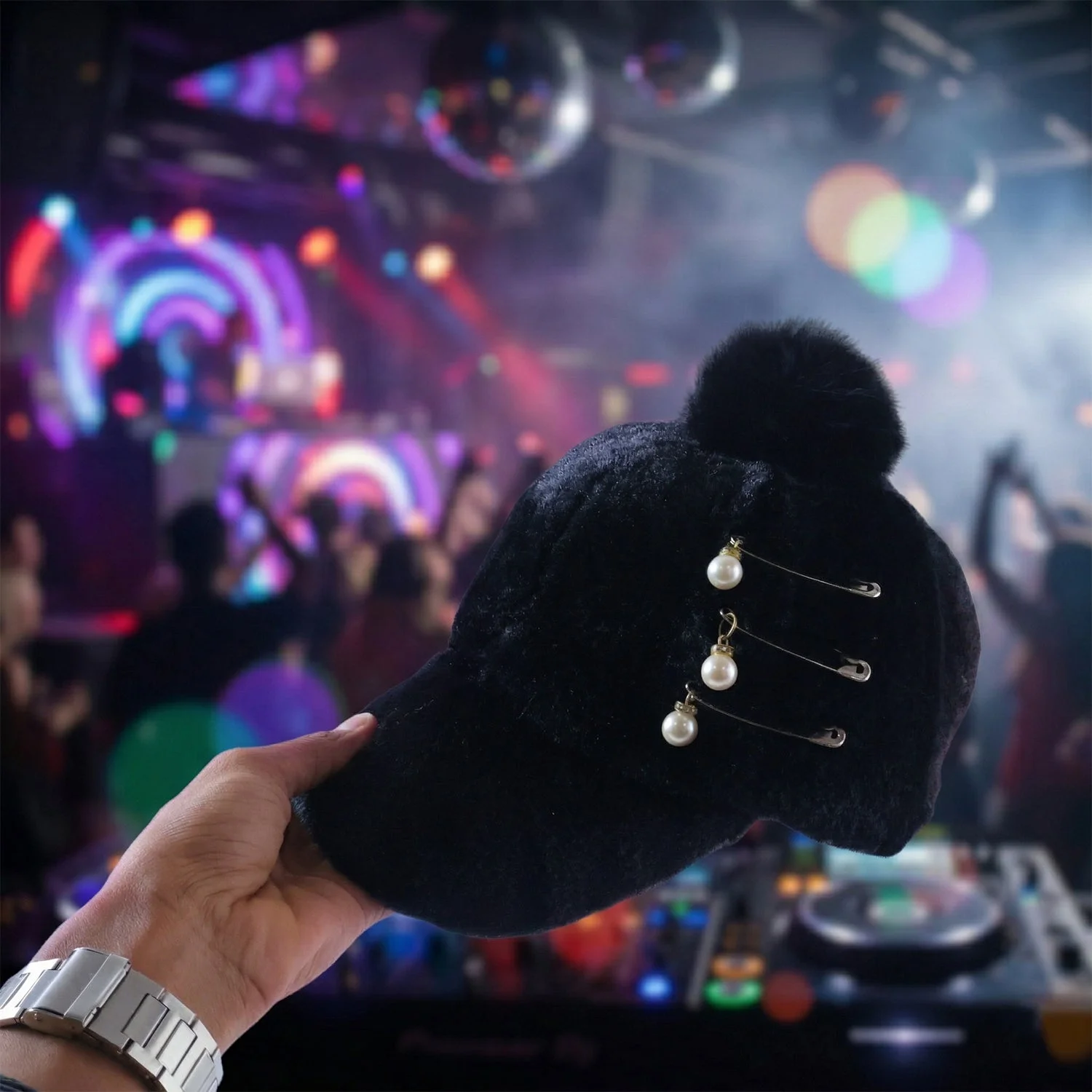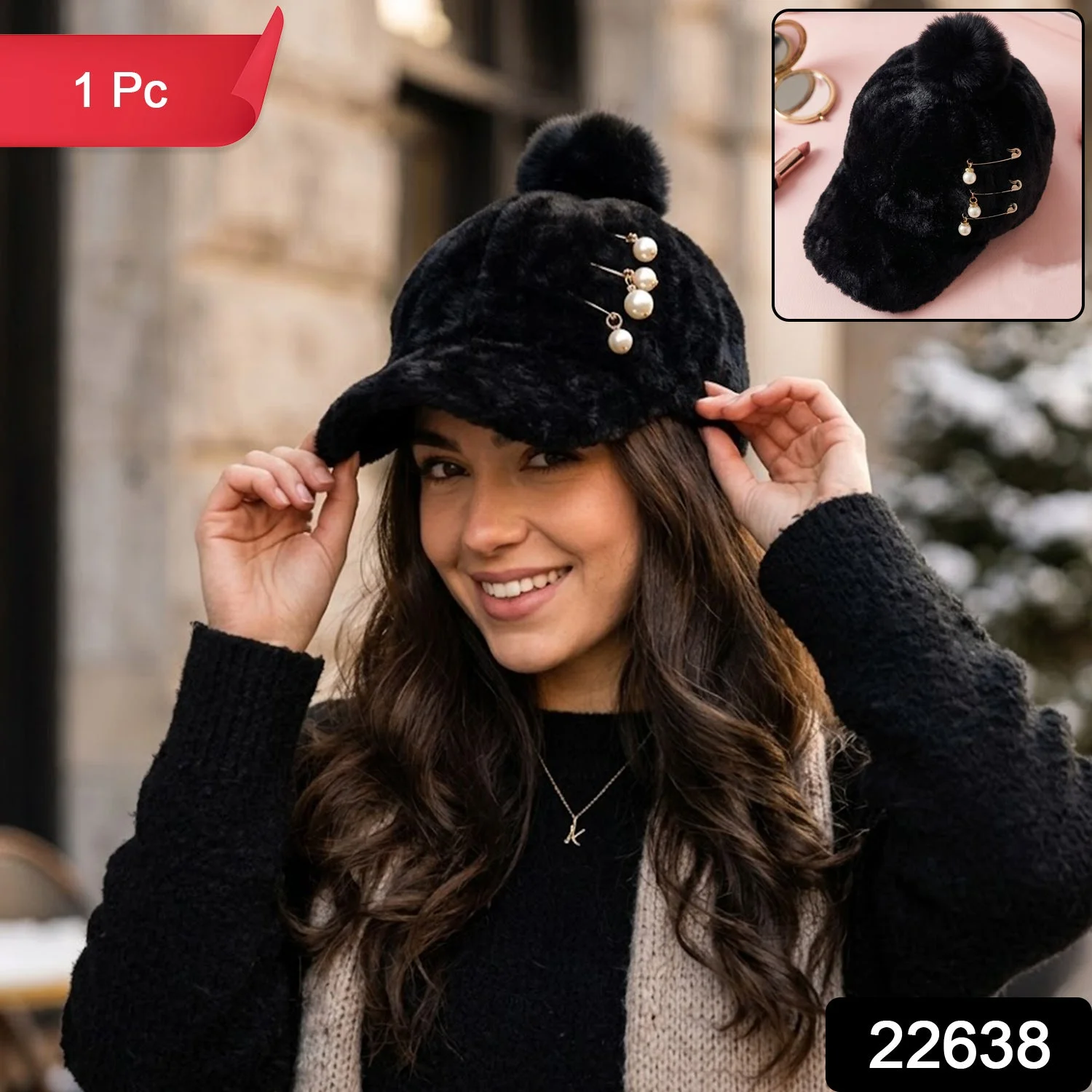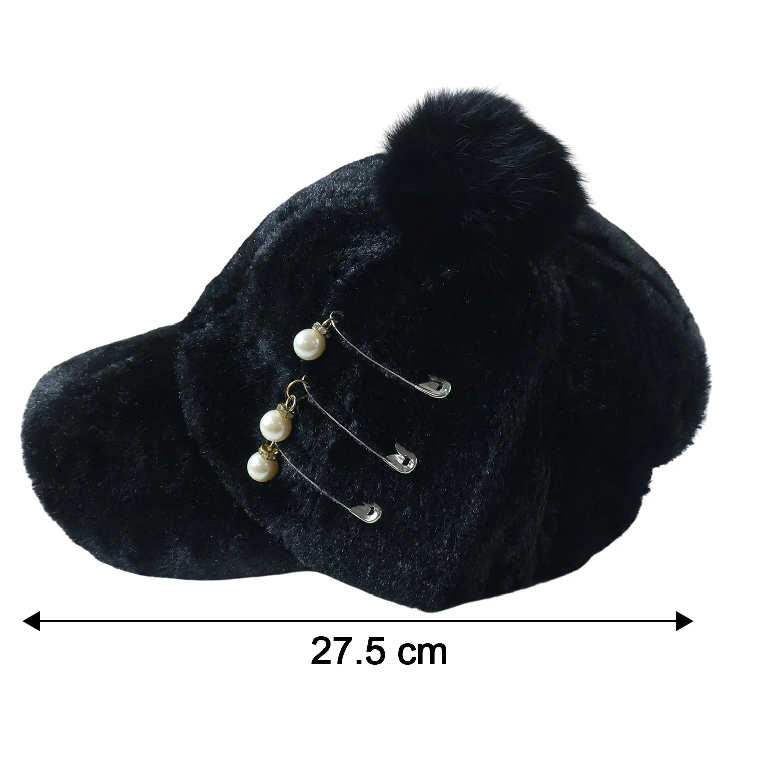 Enhance your winter style with this elegant fur cap designed for both warmth and fashion. Made with a soft plush texture, it provides excellent comfort while keeping you cozy in cold weather. The stylish pom pom on top combined with pearl chain detailing adds a premium and fashionable touch. Its snug and comfortable fit makes it perfect for daily wear, outings, and travel. A perfect blend of functionality and elegance, this cap is an ideal winter accessory for modern styling.